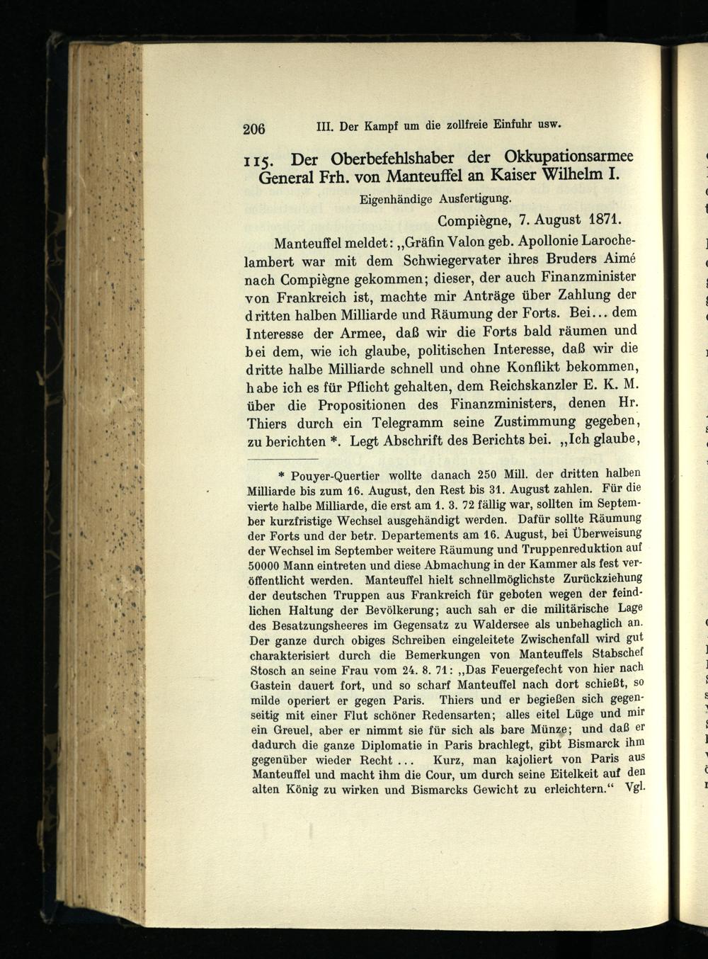 III. Der Kampf um die zollfreie Einfuhr und die Räumungsfrage Juli-Oktober 1871.