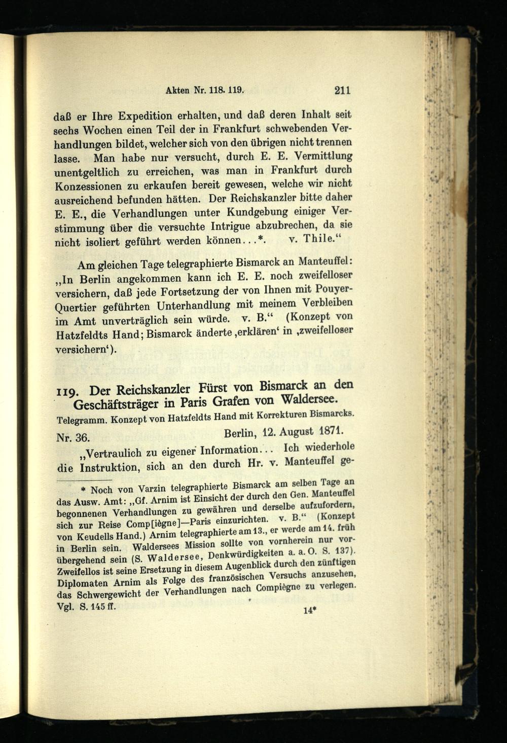 Bismarck und die Friedensunterhändler 1871 : die deutsch-französischen Friedensverhandlungen zu Brüssel und Frankfurt März - Dezember 1871 / bearb. von Hans Goldschmidt