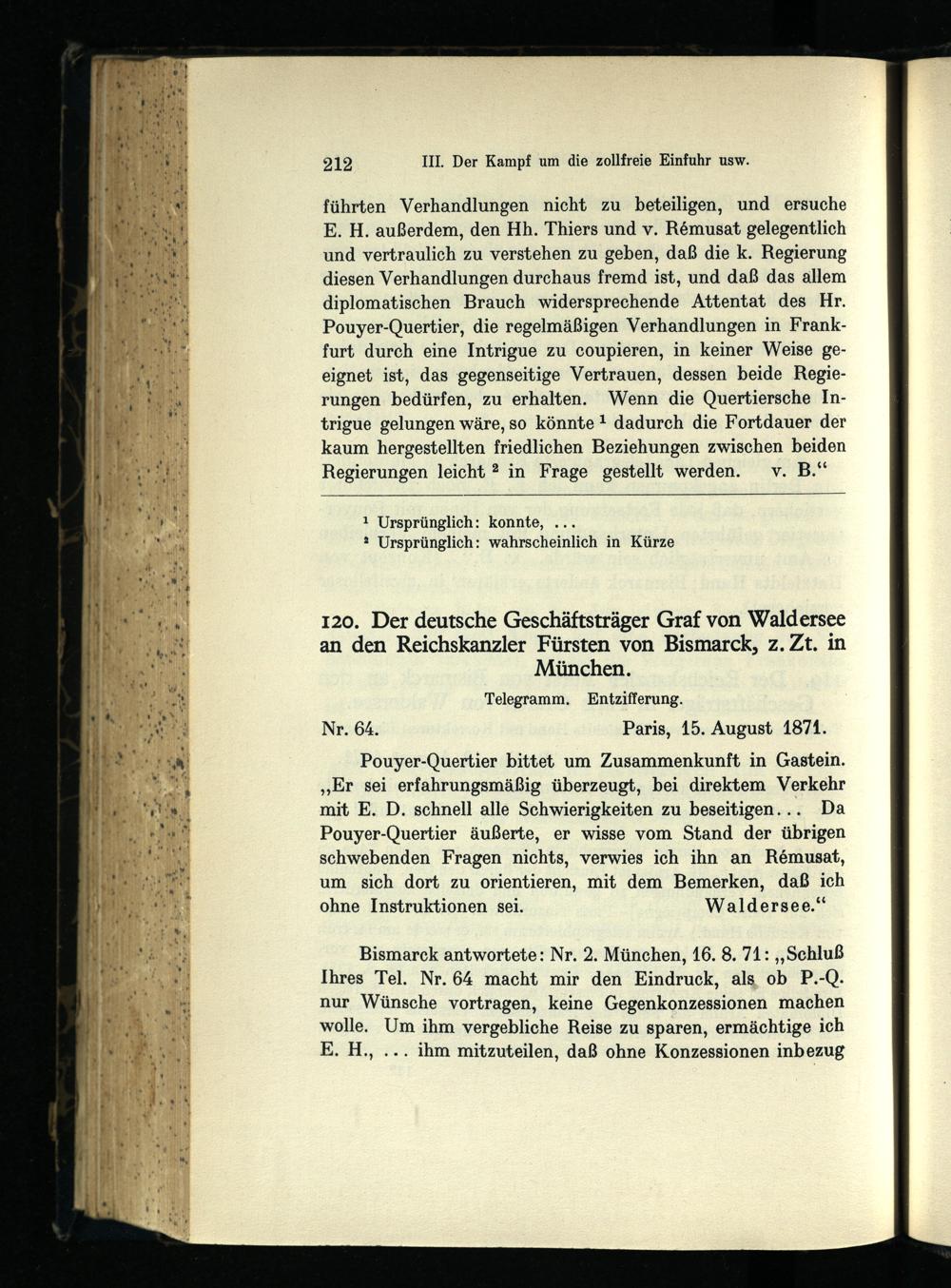 III. Der Kampf um die zollfreie Einfuhr und die Räumungsfrage Juli-Oktober 1871.