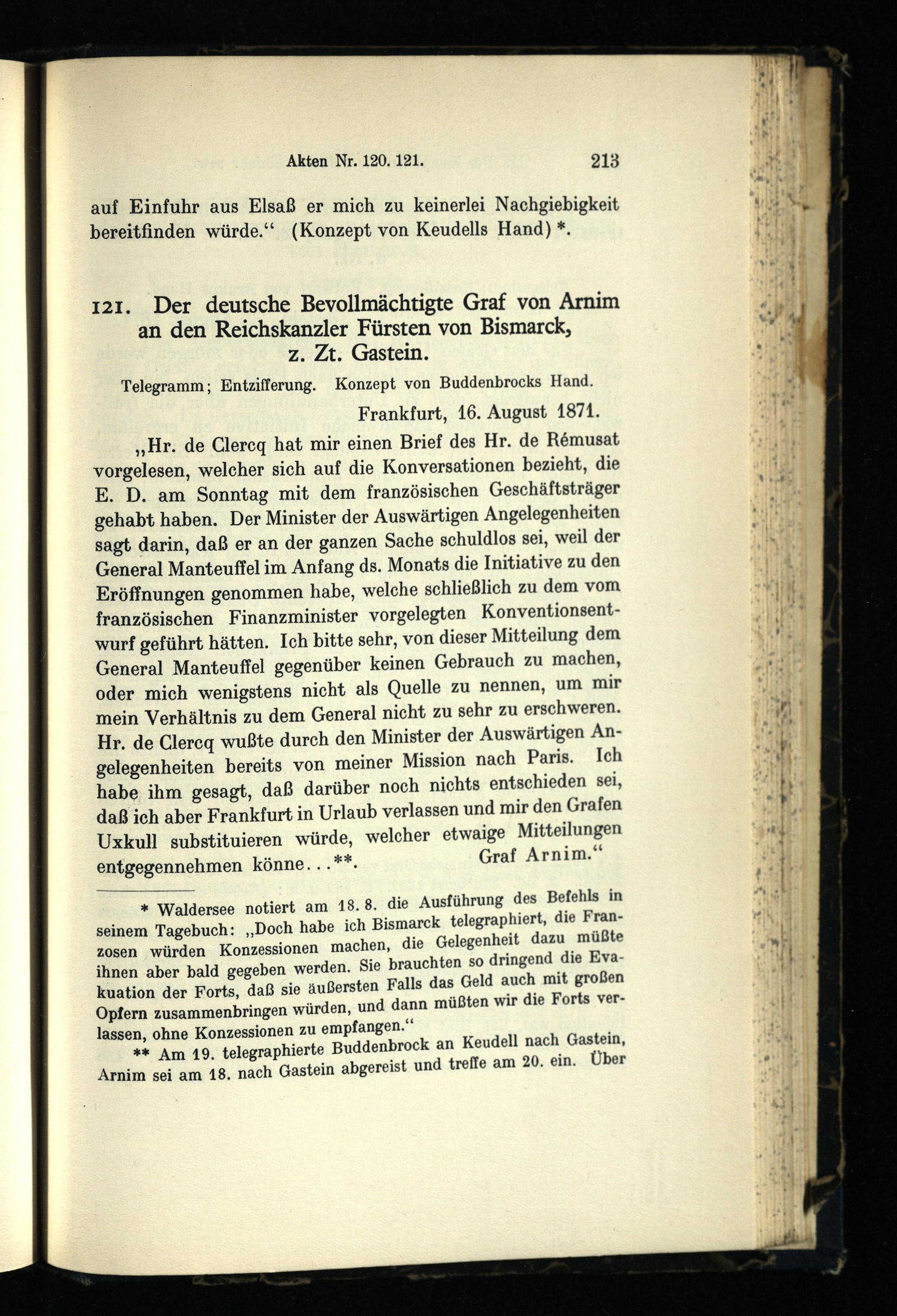 Bismarck und die Friedensunterhändler 1871 : die deutsch-französischen Friedensverhandlungen zu Brüssel und Frankfurt März - Dezember 1871 / bearb. von Hans Goldschmidt