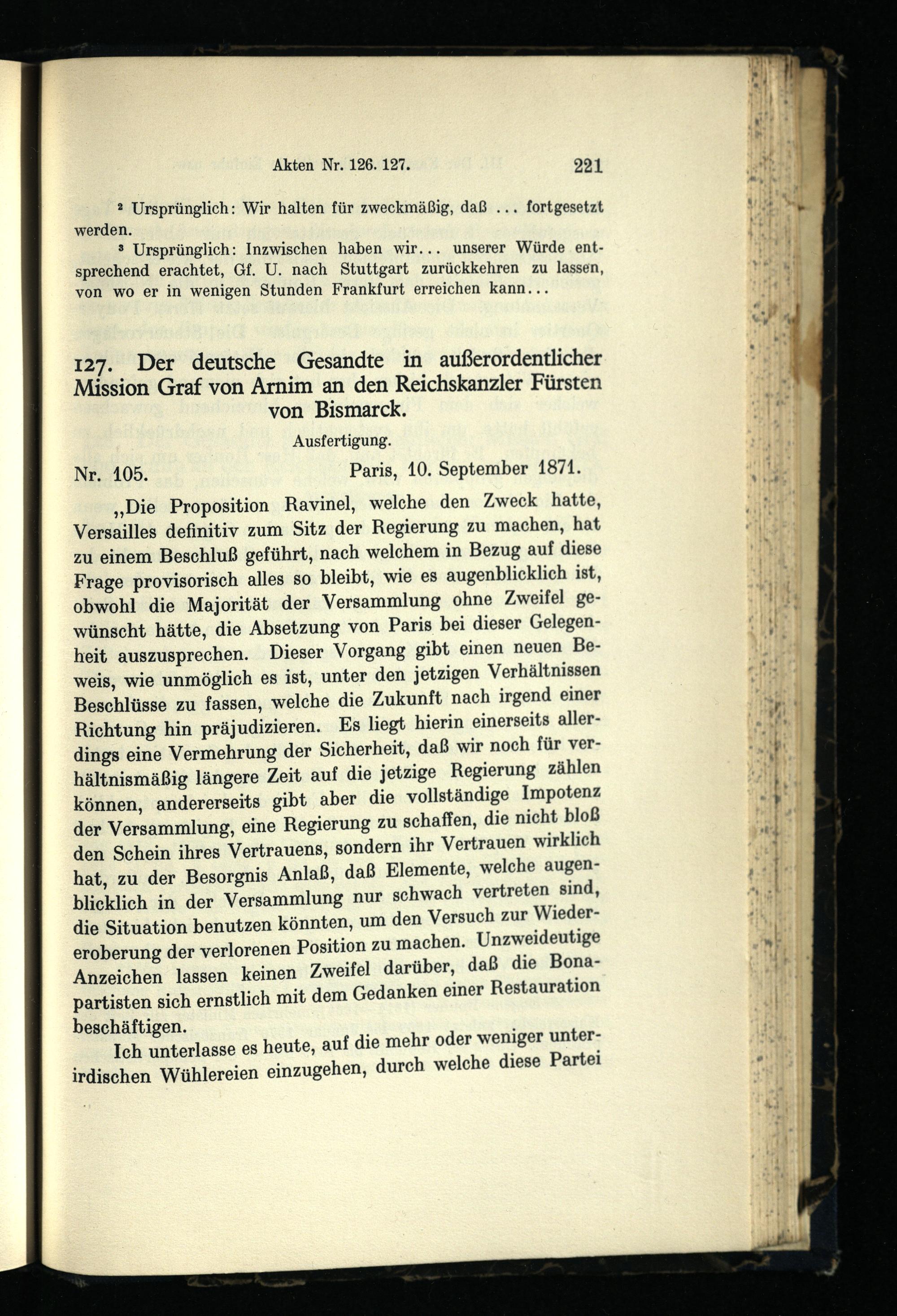Bismarck und die Friedensunterhändler 1871 : die deutsch-französischen Friedensverhandlungen zu Brüssel und Frankfurt März - Dezember 1871 / bearb. von Hans Goldschmidt