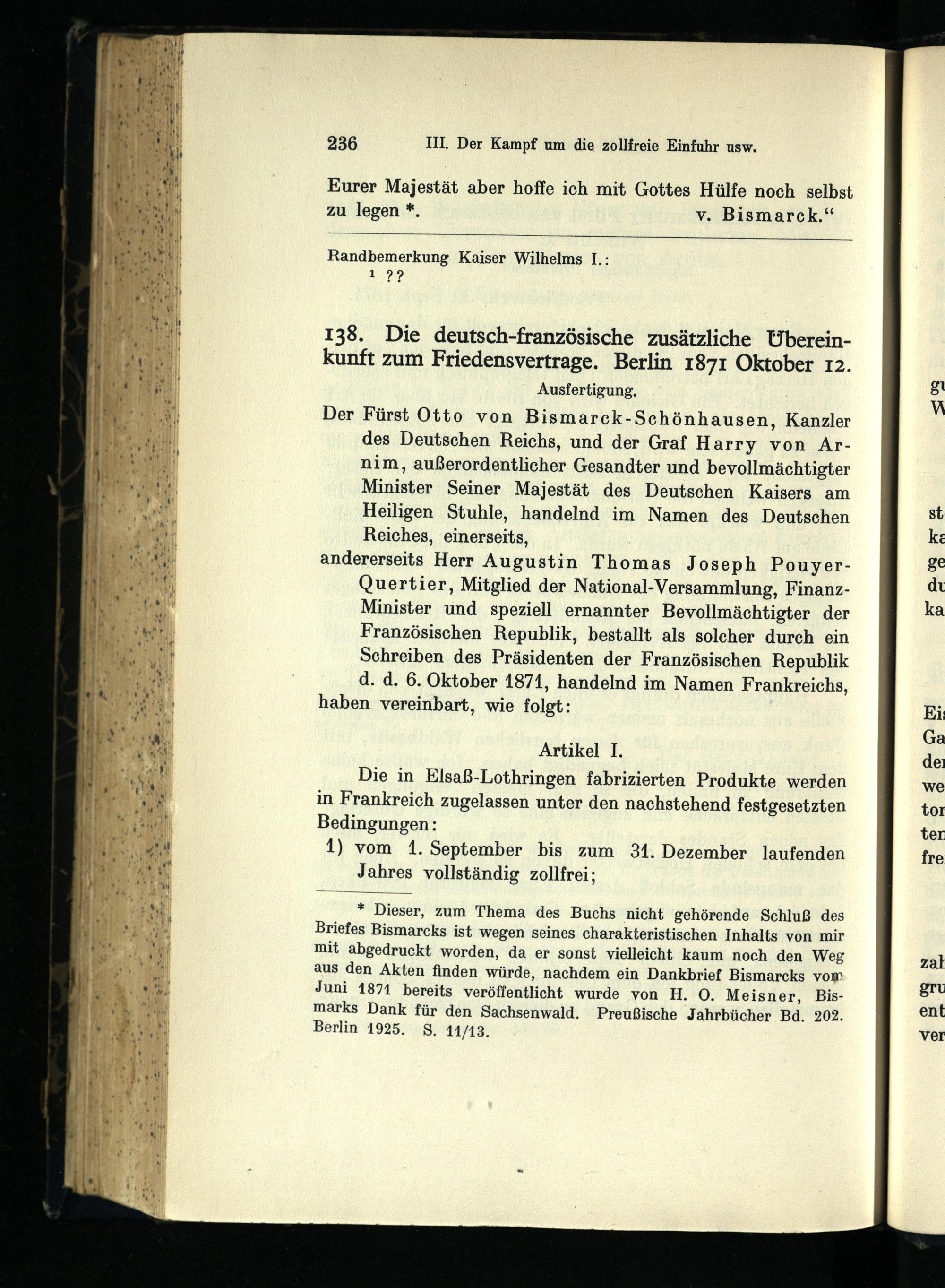 III. Der Kampf um die zollfreie Einfuhr und die Räumungsfrage Juli-Oktober 1871.