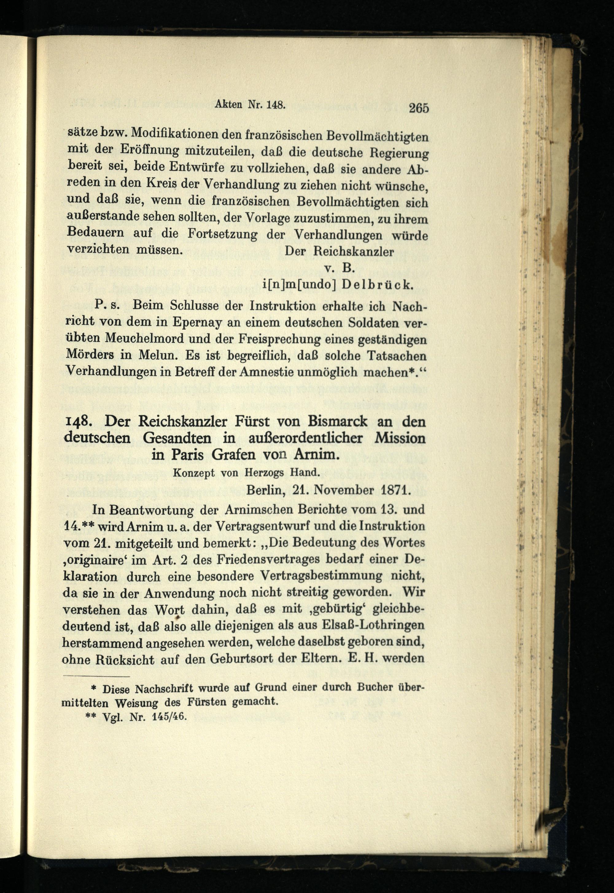 Bismarck und die Friedensunterhändler 1871 : die deutsch-französischen Friedensverhandlungen zu Brüssel und Frankfurt März - Dezember 1871 / bearb. von Hans Goldschmidt
