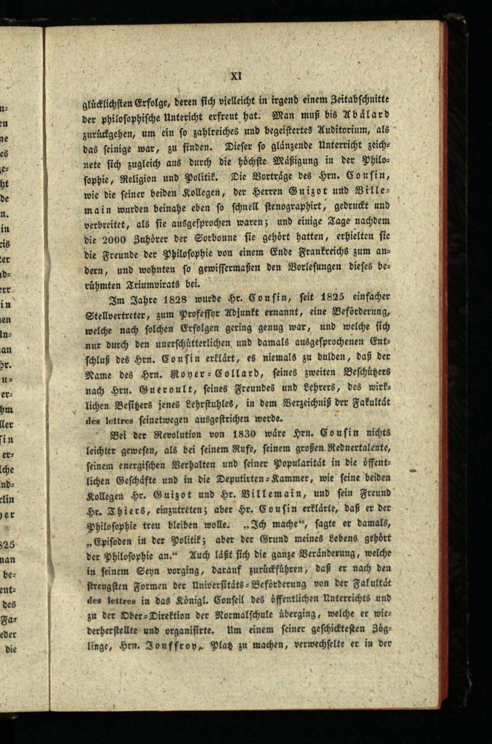 Denkschrift über den Gymnasial-Unterricht im Königreich Preußen / von V. Cousin, Staatsrath, Pair von Frankreich, Mitglied des Instituts und des Königlichen Conseils für den öffentlichen Unterricht ; aus d. Französ. übers. u. mit Anmerk. begleitet nebst des Verfassers Leben und einer allgemeinen Uebersicht der Preuß. und Sächs. Unterrichtsanstalten herausgegeben von Dr. J.C. Kröger, Katecheten am Waisenhause in Hamburg, der Hamburg. Gesellschaft zur Beförderung der Künste und nützlichen Gewerbe [et]c. Ehrenmitgliede