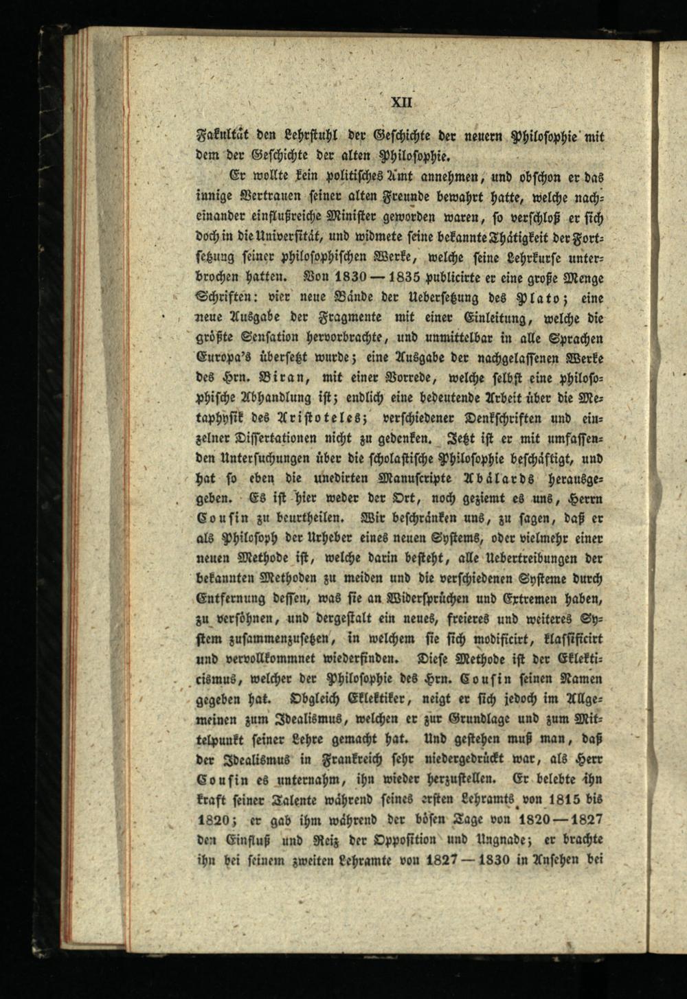 Denkschrift über den Gymnasial-Unterricht im Königreich Preußen / von V. Cousin, Staatsrath, Pair von Frankreich, Mitglied des Instituts und des Königlichen Conseils für den öffentlichen Unterricht ; aus d. Französ. übers. u. mit Anmerk. begleitet nebst des Verfassers Leben und einer allgemeinen Uebersicht der Preuß. und Sächs. Unterrichtsanstalten herausgegeben von Dr. J.C. Kröger, Katecheten am Waisenhause in Hamburg, der Hamburg. Gesellschaft zur Beförderung der Künste und nützlichen Gewerbe [et]c. Ehrenmitgliede