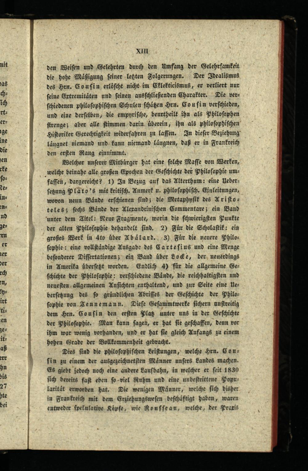 Denkschrift über den Gymnasial-Unterricht im Königreich Preußen / von V. Cousin, Staatsrath, Pair von Frankreich, Mitglied des Instituts und des Königlichen Conseils für den öffentlichen Unterricht ; aus d. Französ. übers. u. mit Anmerk. begleitet nebst des Verfassers Leben und einer allgemeinen Uebersicht der Preuß. und Sächs. Unterrichtsanstalten herausgegeben von Dr. J.C. Kröger, Katecheten am Waisenhause in Hamburg, der Hamburg. Gesellschaft zur Beförderung der Künste und nützlichen Gewerbe [et]c. Ehrenmitgliede