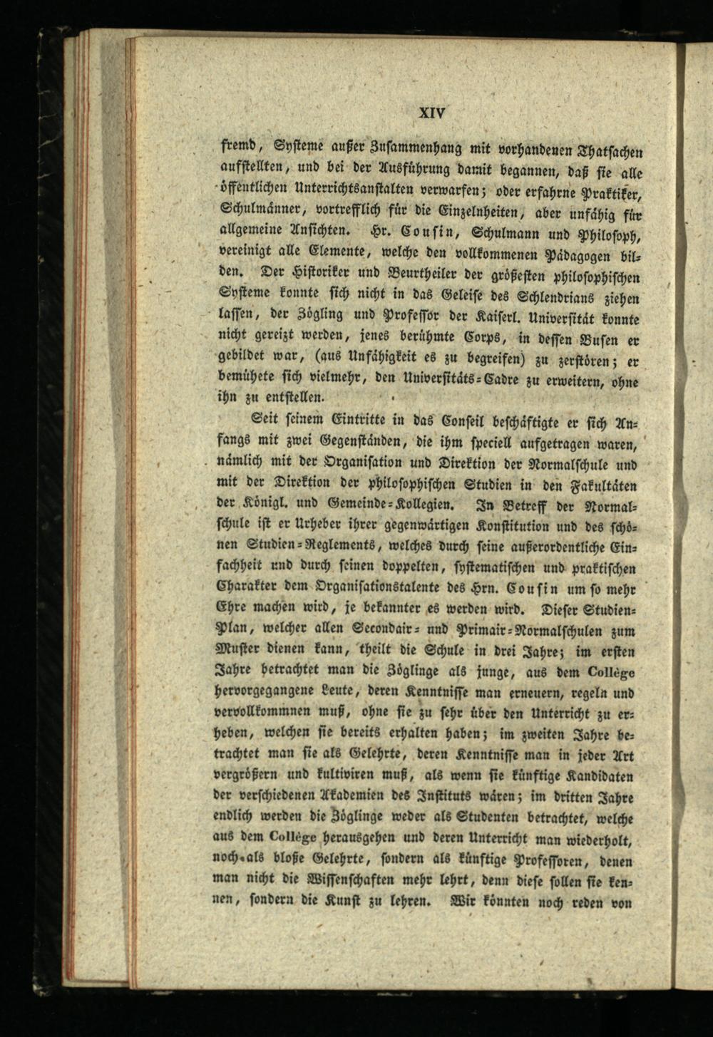 Denkschrift über den Gymnasial-Unterricht im Königreich Preußen / von V. Cousin, Staatsrath, Pair von Frankreich, Mitglied des Instituts und des Königlichen Conseils für den öffentlichen Unterricht ; aus d. Französ. übers. u. mit Anmerk. begleitet nebst des Verfassers Leben und einer allgemeinen Uebersicht der Preuß. und Sächs. Unterrichtsanstalten herausgegeben von Dr. J.C. Kröger, Katecheten am Waisenhause in Hamburg, der Hamburg. Gesellschaft zur Beförderung der Künste und nützlichen Gewerbe [et]c. Ehrenmitgliede