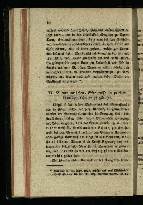 Denkschrift über den Gymnasial-Unterricht im Königreich Preußen / von V. Cousin, Staatsrath, Pair von Frankreich, Mitglied des Instituts und des Königlichen Conseils für den öffentlichen Unterricht ; aus d. Französ. übers. u. mit Anmerk. begleitet nebst des Verfassers Leben und einer allgemeinen Uebersicht der Preuß. und Sächs. Unterrichtsanstalten herausgegeben von Dr. J.C. Kröger, Katecheten am Waisenhause in Hamburg, der Hamburg. Gesellschaft zur Beförderung der Künste und nützlichen Gewerbe [et]c. Ehrenmitgliede