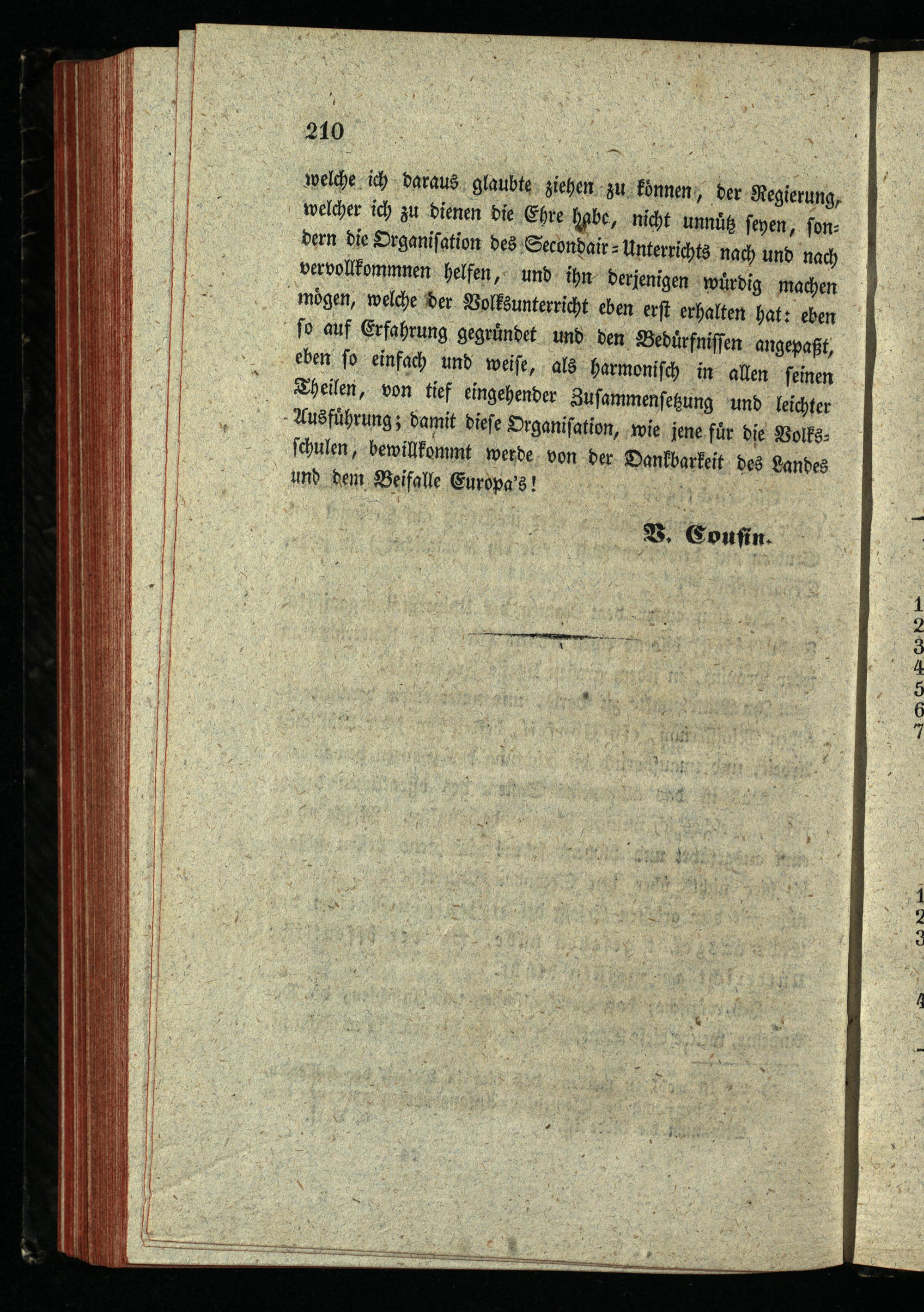Denkschrift über den Gymnasial-Unterricht im Königreich Preußen / von V. Cousin, Staatsrath, Pair von Frankreich, Mitglied des Instituts und des Königlichen Conseils für den öffentlichen Unterricht ; aus d. Französ. übers. u. mit Anmerk. begleitet nebst des Verfassers Leben und einer allgemeinen Uebersicht der Preuß. und Sächs. Unterrichtsanstalten herausgegeben von Dr. J.C. Kröger, Katecheten am Waisenhause in Hamburg, der Hamburg. Gesellschaft zur Beförderung der Künste und nützlichen Gewerbe [et]c. Ehrenmitgliede
