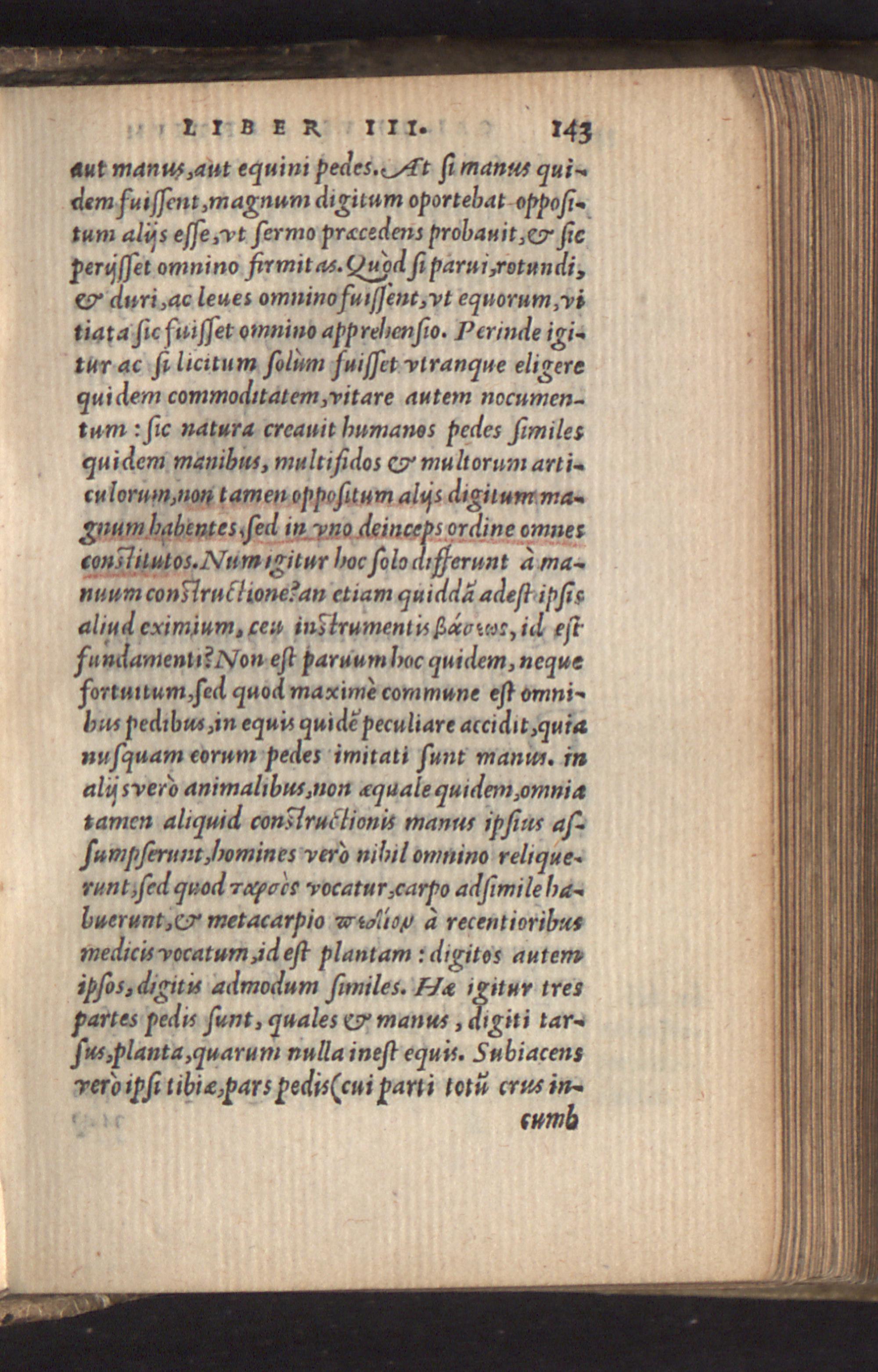 Hominis pedes multifidos esse, partiumq; pedis & manus collationem ponit.