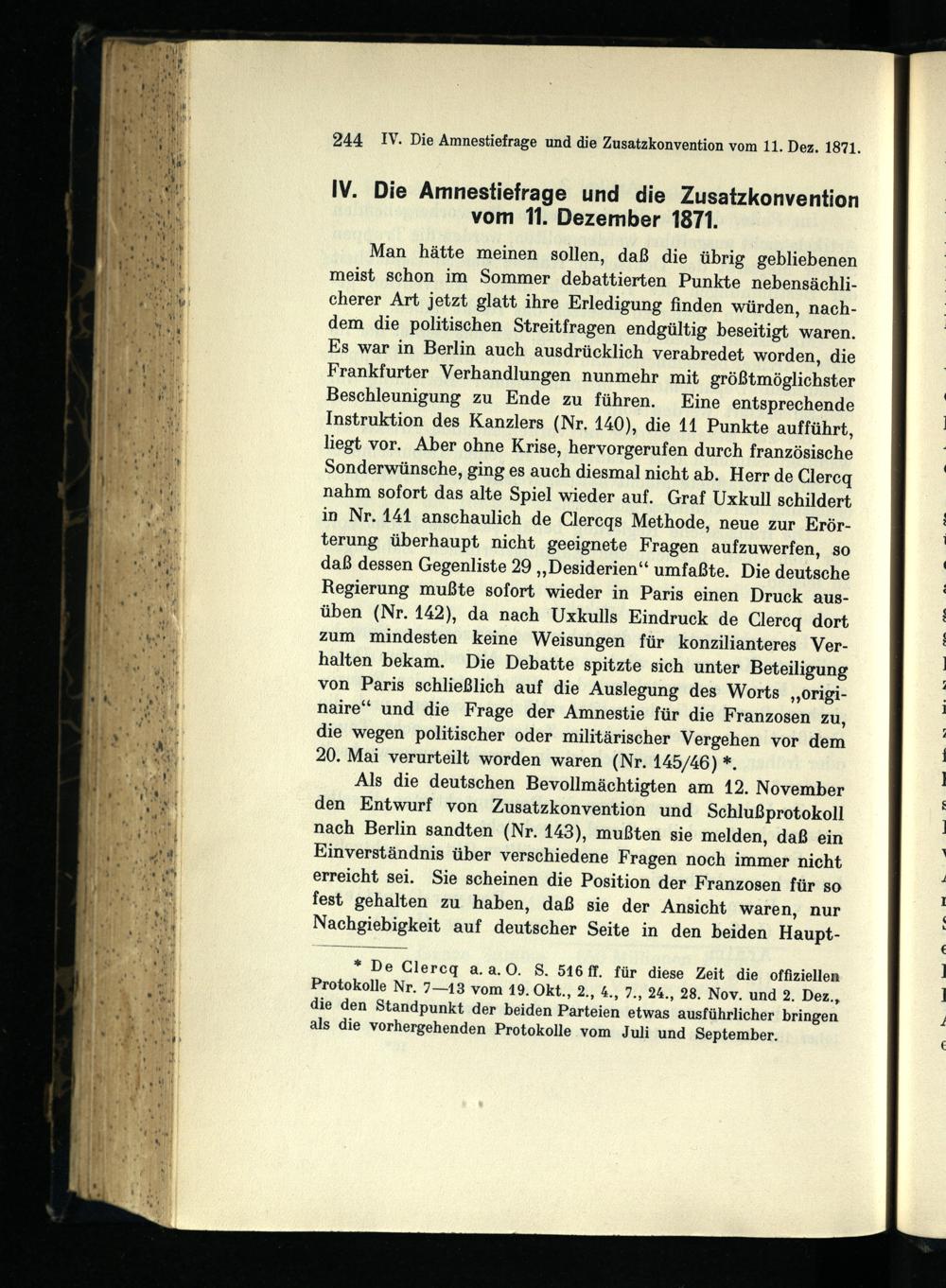 IV. Die Amnestiefrage und die Zusatzkonvention vom 11. Dezember 1871.
