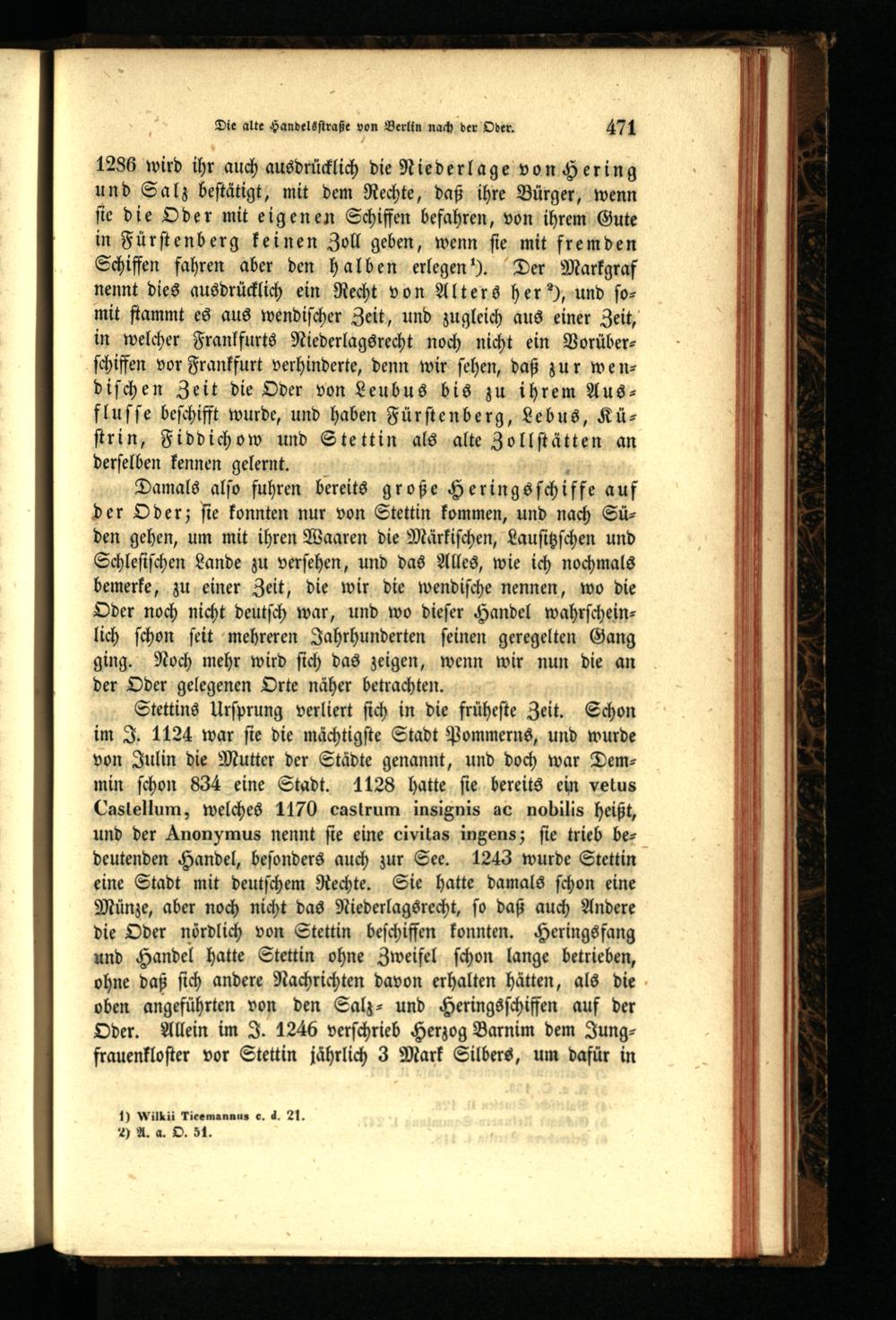 I. Ueber die alte Handelsstraße von Berlin nach der Oder.