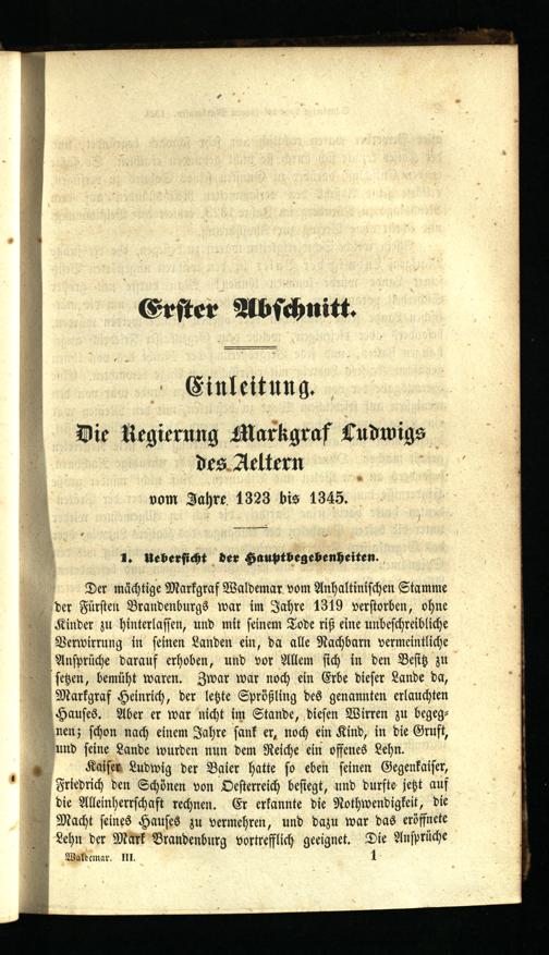 Erster Abschnitt. Einleitung. Die Regierung Markgraf Ludwigs des Aelteren vom Jahre 1323 bis 1345.