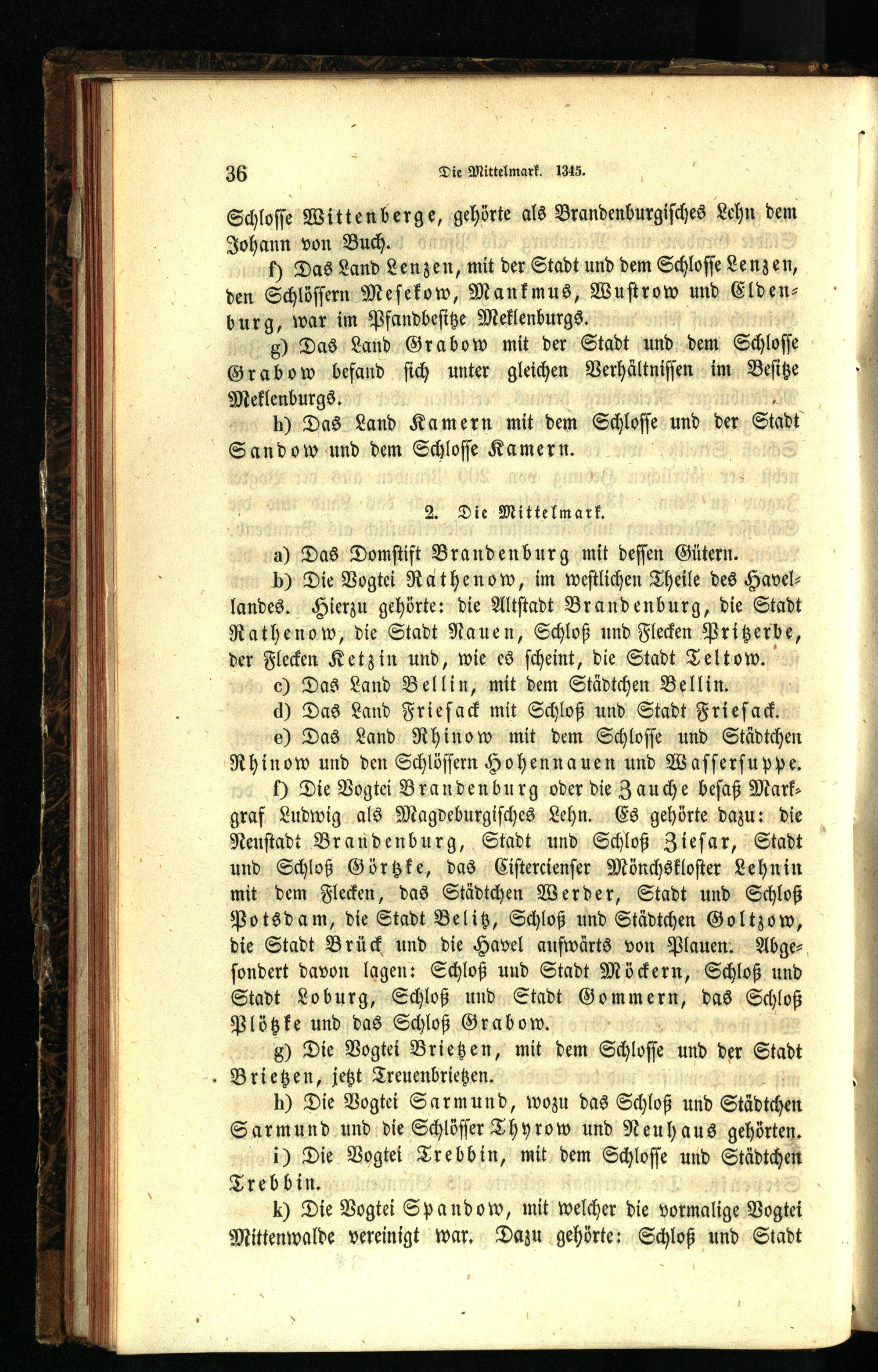 Karte der Brandenburgischen Lande im Jahre 1356.