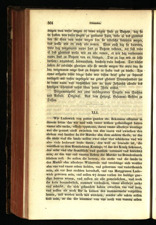 I. Ueber Ludwigs des Römers erste Anwesenheit in der Mark, dessen Reise nach Polen, und eine bisher zweifelhafte Tochter Markgraf Ludwigs des Aelteren.