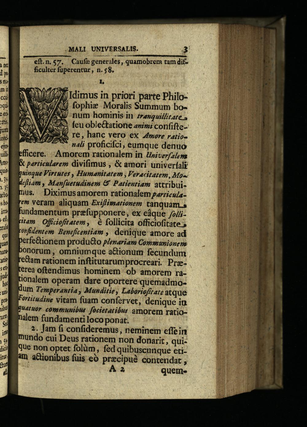 Christiani Thomasii, JCti, Regiæ Majest. Borussiæ Consiliarii, in Univers. Fridericiana P.P. dictæque Univ. & Facult. ibidem Juridicæ Senioris, Introductio In Philosophiam Moralem, Sive De Arte Rationaliter Et Virtuose Amandi, tanquam unicâ viâ ad vitam beatam, elegantem ac tranquillam perveniendi : Cum Præfatione, In quâ inter alia Autor colloquiorum curiosorum menstruorum amicè monetur atque oratur, ne de rebus captum suum transcendentibus judicet, sed Autorem tandem missum faciat