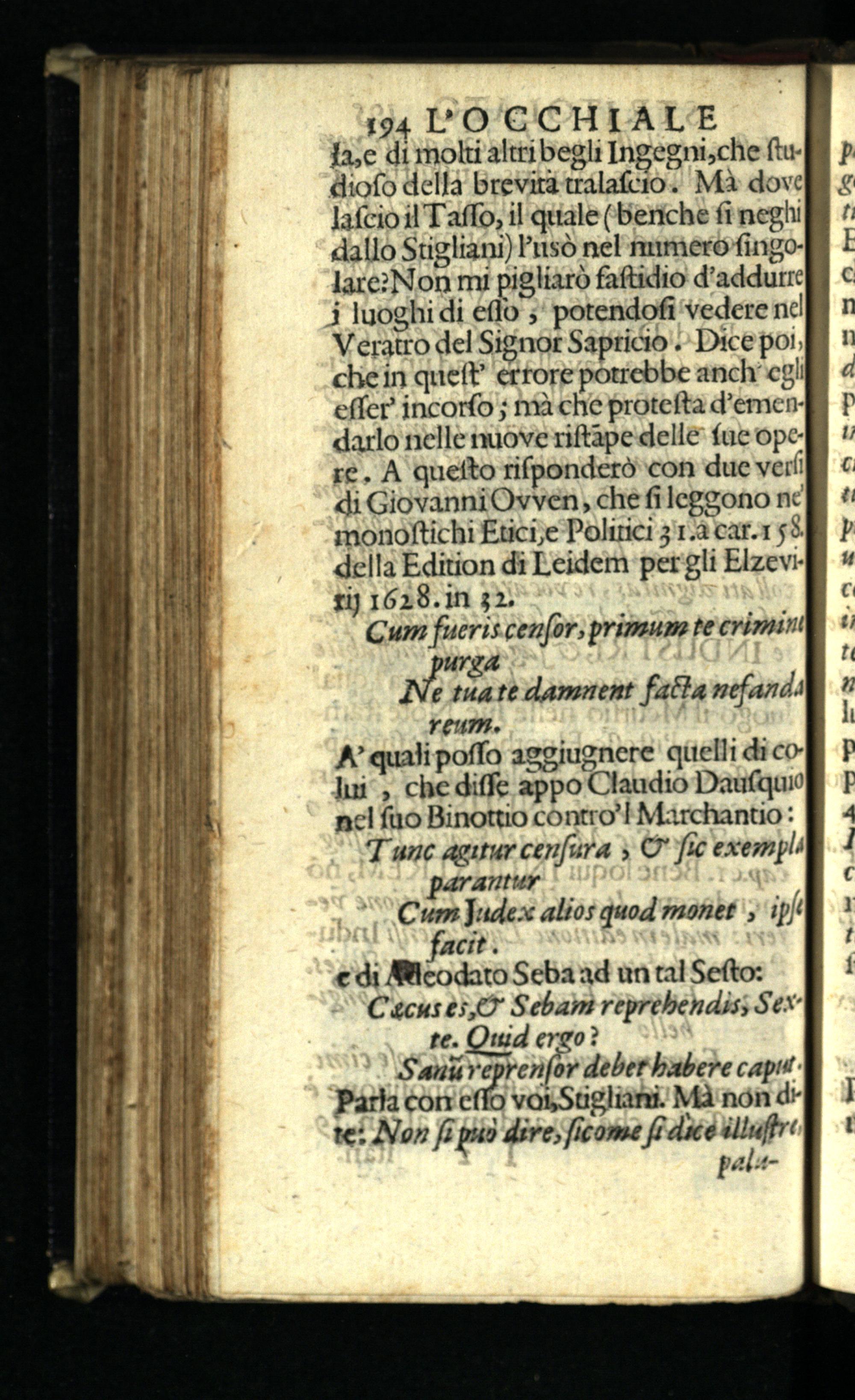 L'Occhiale stritolato di Scipio Glareano per risposta al Signor Cavalier Tommaso Stigliani.