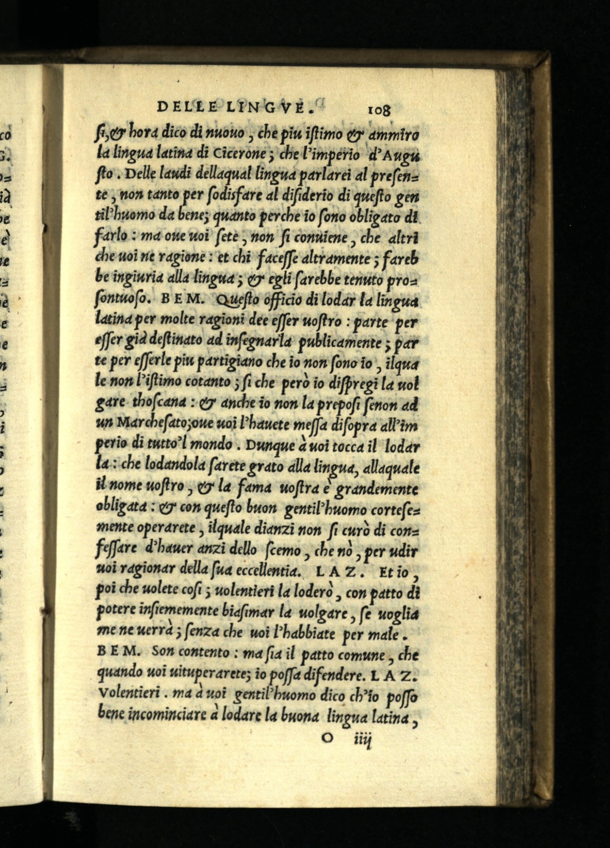 Dialogo delle lingue. Interlocutori. Bembo, Lazaro, Cortegiano, Scholare, Lascaro,...