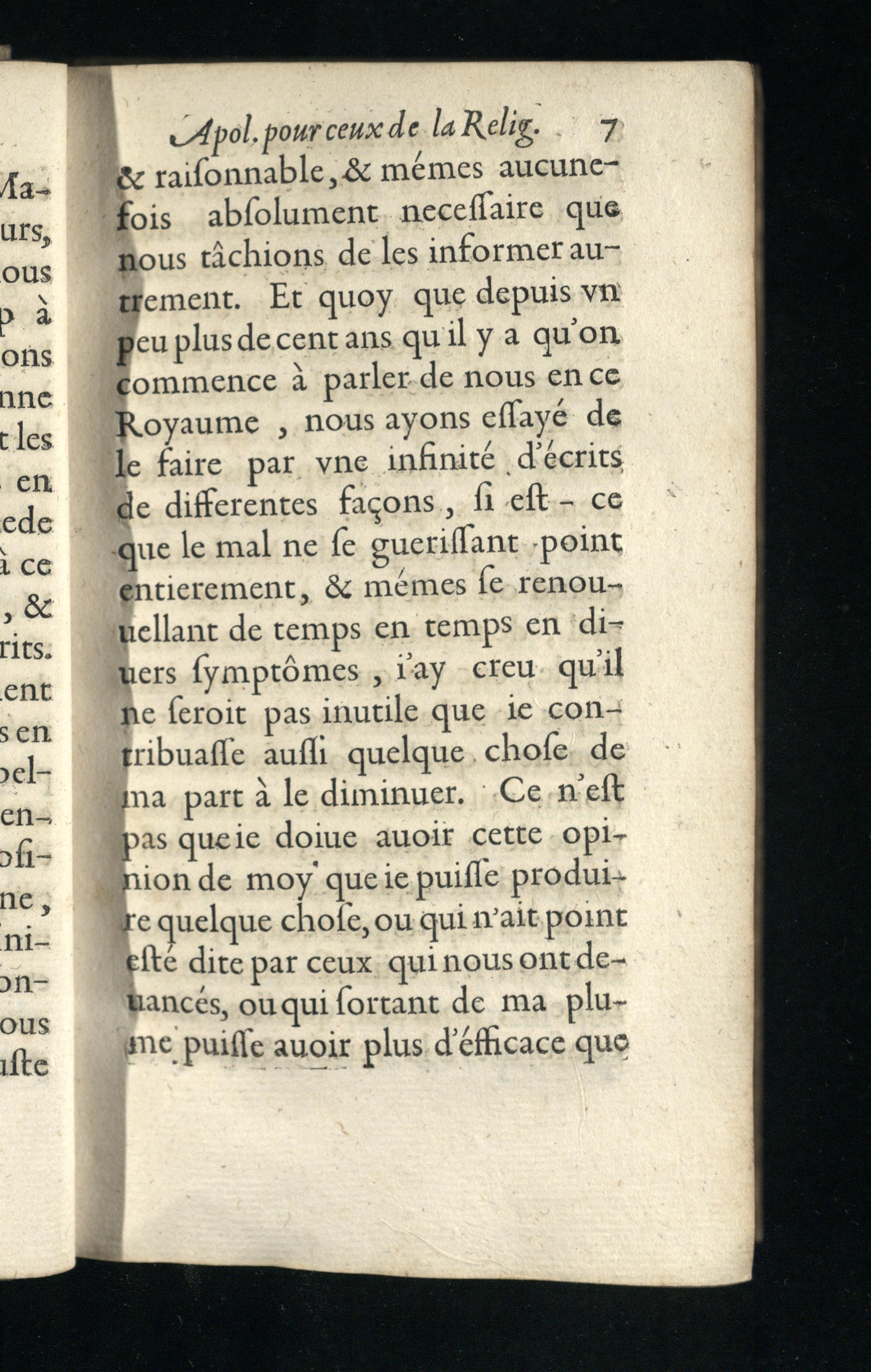Apologie Povr Cevx De La Religion. Svr Les Sviets D'Auersion que plusieurs pensent auoir contre leurs personnes & leur creance / Par Moyse Amyravt.