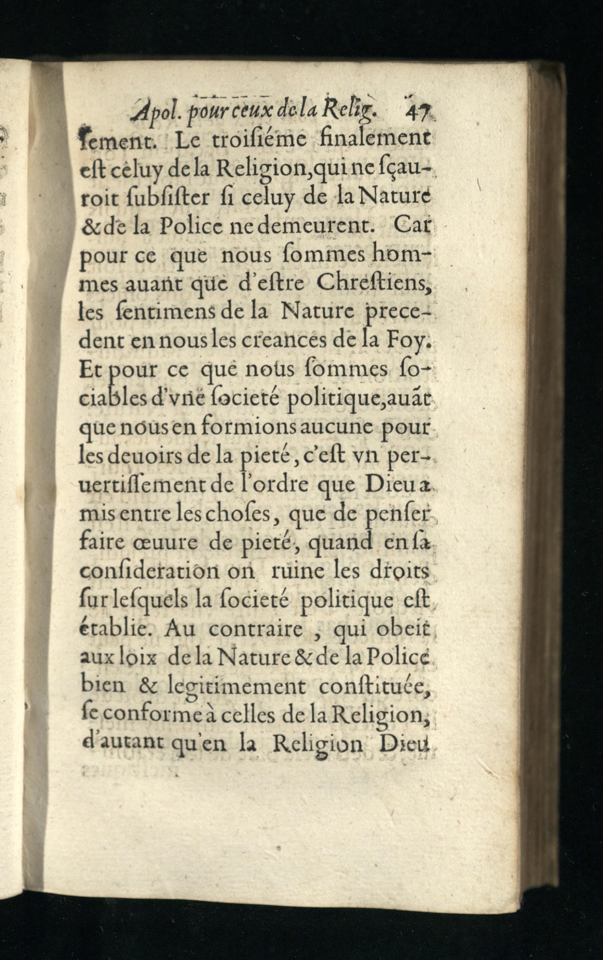 Apologie Povr Cevx De La Religion. Svr Les Sviets D'Auersion que plusieurs pensent...