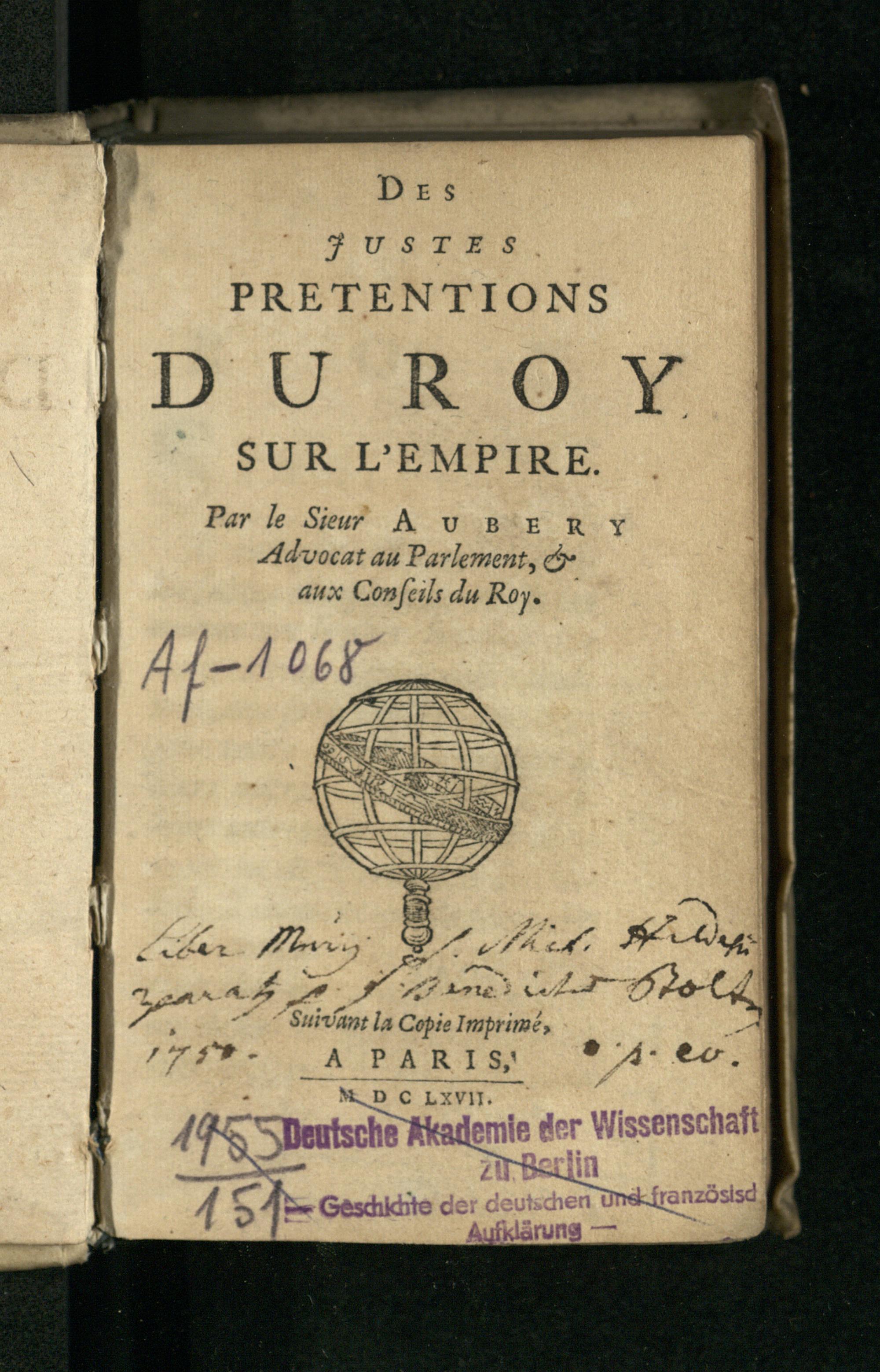 Des Ivstes Pretentions Dv Roy Svr L'Empire / Par le Sievr Aubery Advocat au Parlement, & aux Conseils du Roy