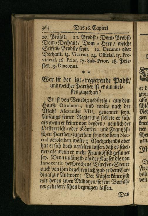 Anhang (1698) Curiöser Anhang : Worinnen enthalten Eine kurtze Beschreibung aller Päbste/ Kayser/ Könige und Chur-Fürsten ...Von Anfang ihrer Regierung/ biß auf dieses 1698ste Jahr ... ; In vielen verbessert/ und mit den Königen oder Groß-Moguln in Indien ... und Hertzogen zu Venedig vermehret