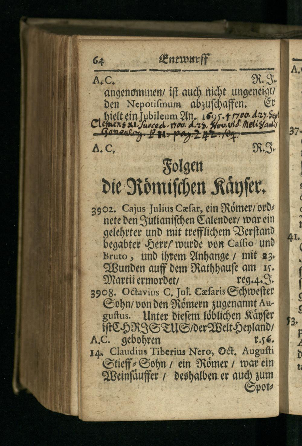 Anhang (1698) Curiöser Anhang : Worinnen enthalten Eine kurtze Beschreibung aller Päbste/ Kayser/ Könige und Chur-Fürsten ...Von Anfang ihrer Regierung/ biß auf dieses 1698ste Jahr ... ; In vielen verbessert/ und mit den Königen oder Groß-Moguln in Indien ... und Hertzogen zu Venedig vermehret