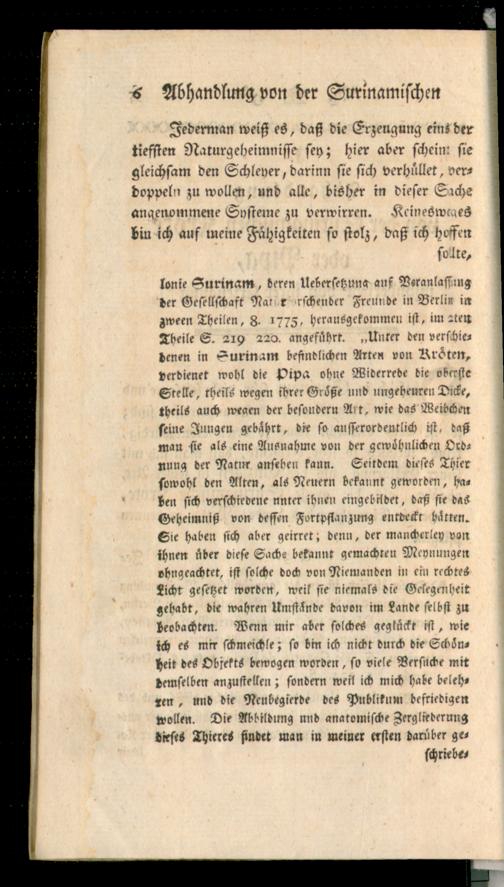 ... Philipp Fermins Abhandlungen von der Surinamischen Kröte oder Pipa, und dem völlig entdeckten Geheimniß ihrer Erzeugung, aus dem Französischen übersetzt, und mit der Beschreibung eines sehr schönen Exemplars des Herzogl. Naturalienkabinets in Braunschweig, sowie auch einer kurzen Geschichte der Pipa, begleitet von Jahann [!] August Ephraim Goeze : Mit vier Kupfertafeln