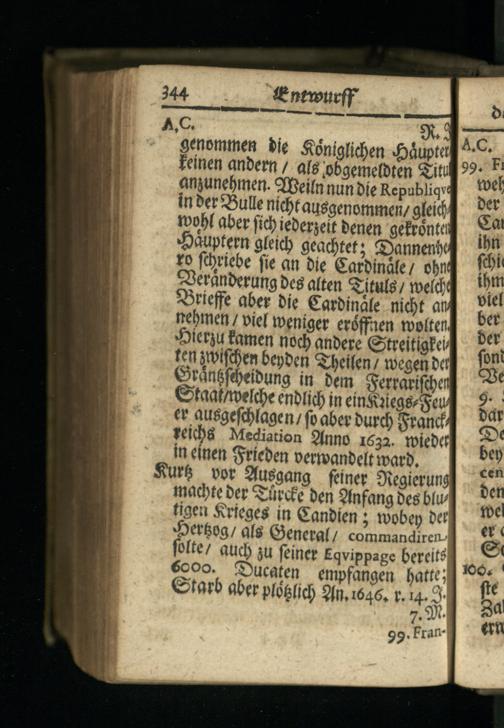 Anhang (1698) Curiöser Anhang : Worinnen enthalten Eine kurtze Beschreibung aller Päbste/ Kayser/ Könige und Chur-Fürsten ...Von Anfang ihrer Regierung/ biß auf dieses 1698ste Jahr ... ; In vielen verbessert/ und mit den Königen oder Groß-Moguln in Indien ... und Hertzogen zu Venedig vermehret