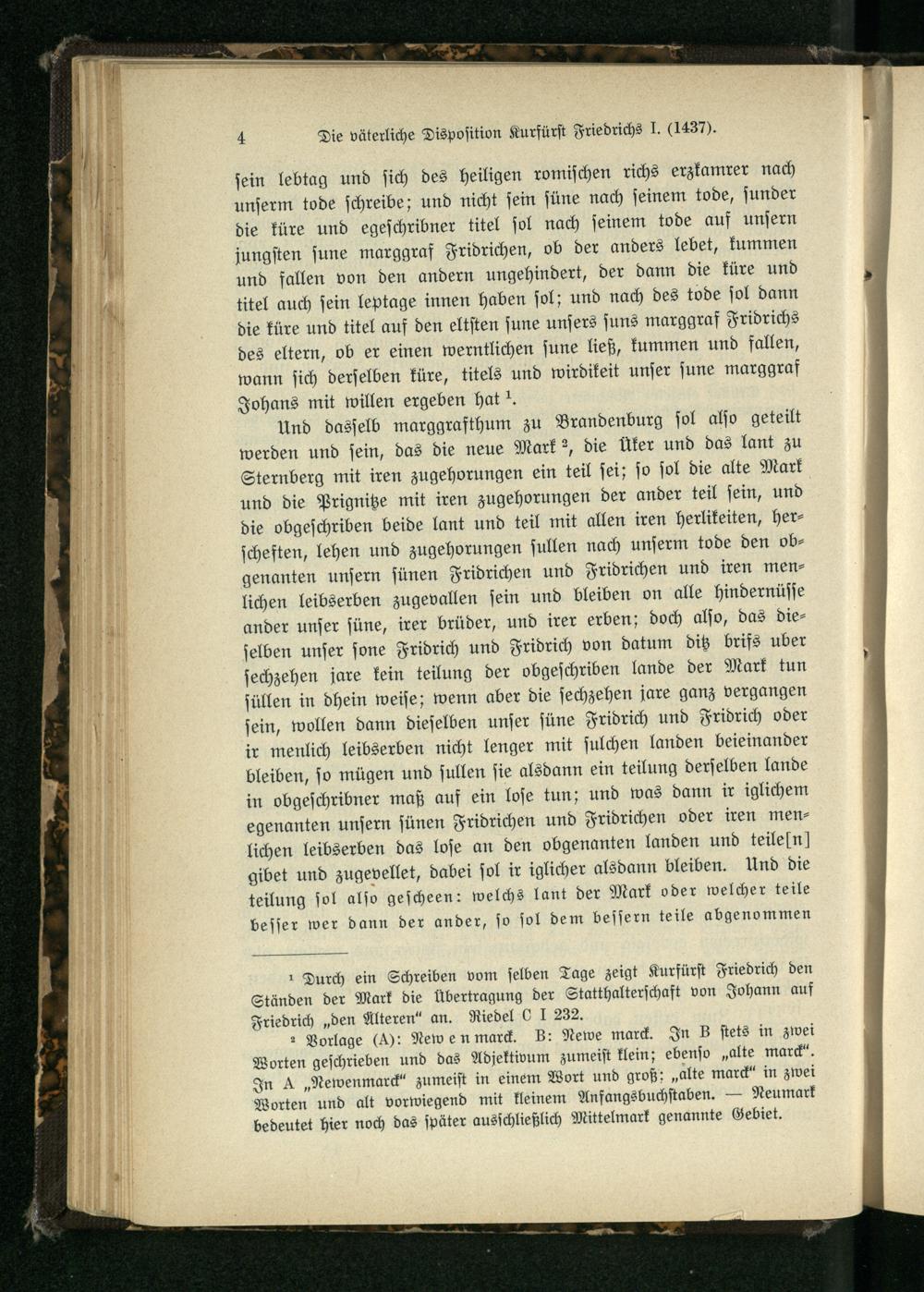 Nr. 1. Die väterliche Disposition Kurfürst Friedrichs I.