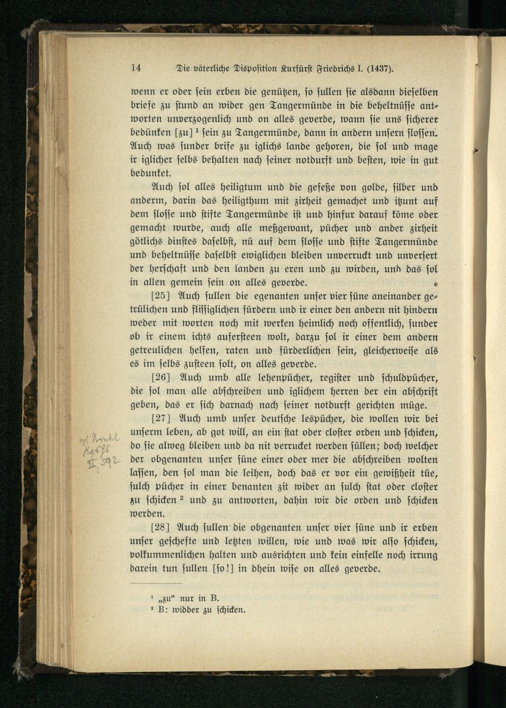 Nr. 1. Die väterliche Disposition Kurfürst Friedrichs I.