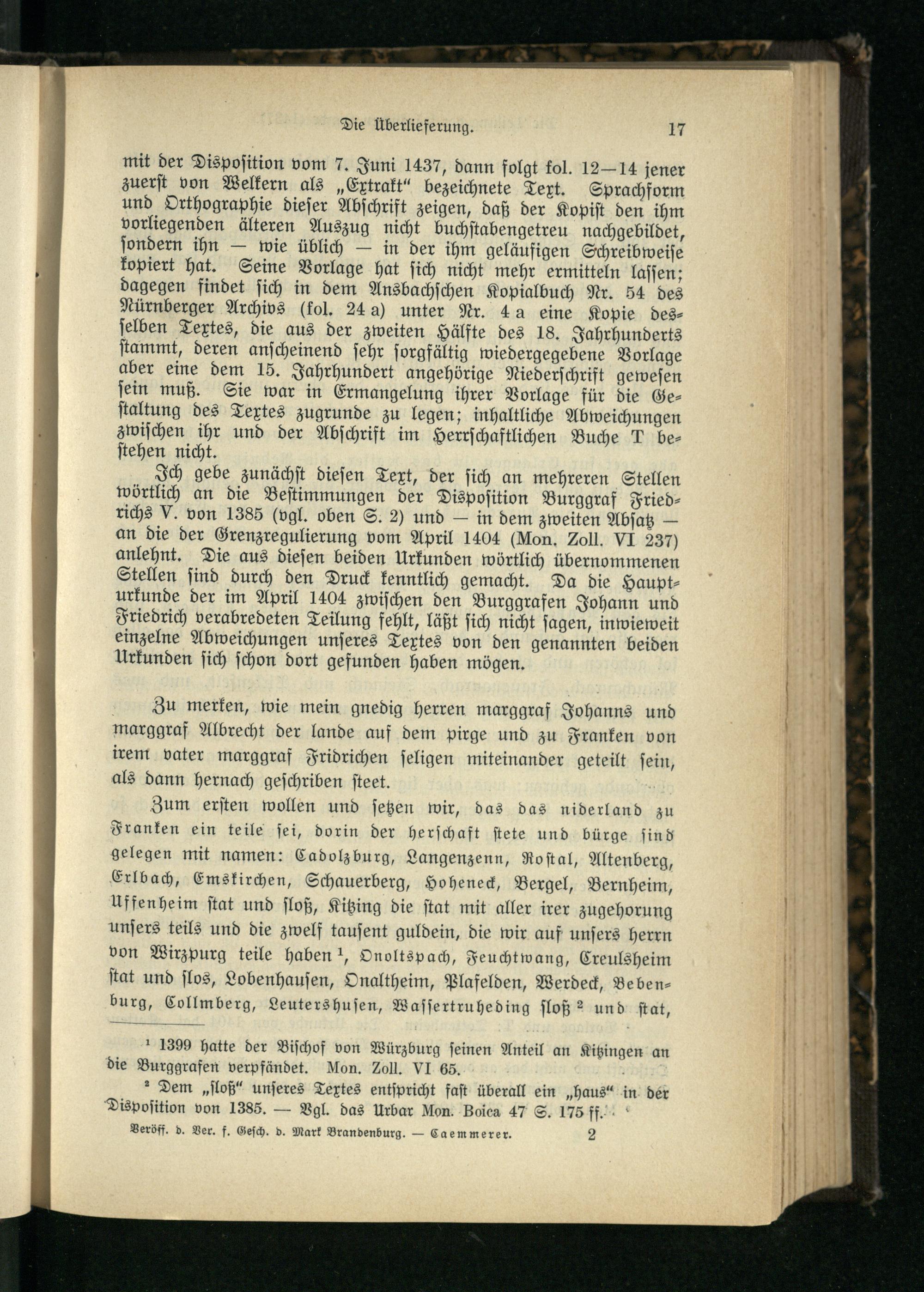 Nr. 2. Die Teilung der fränkischen Lande (1437).