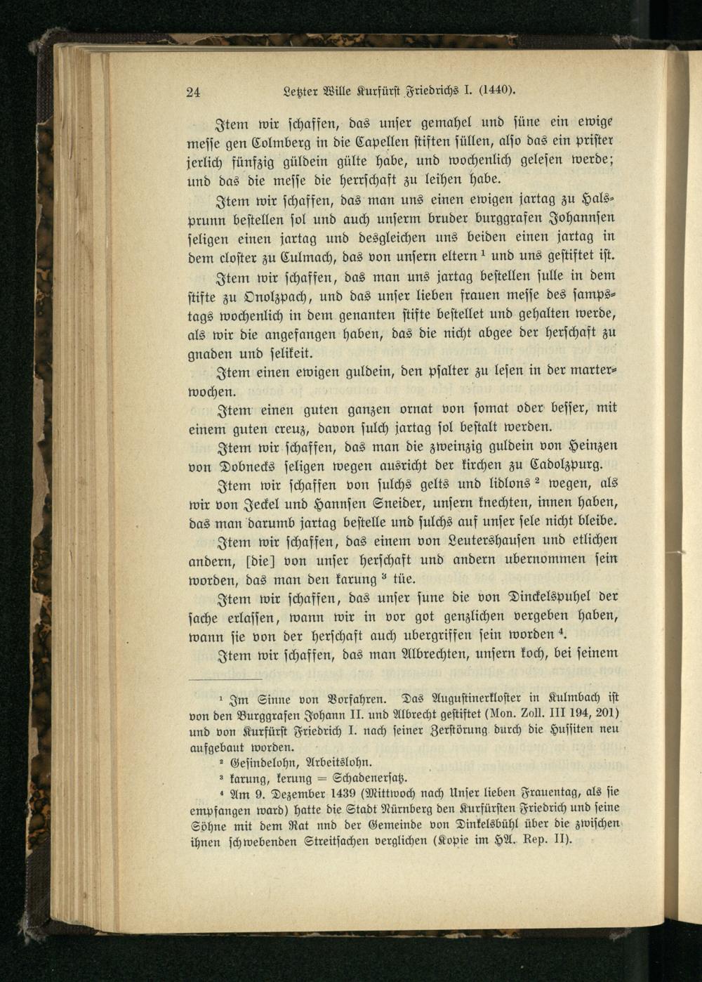 Nr. 3. Letzter Wille Kurfürst Friedrichs I.
