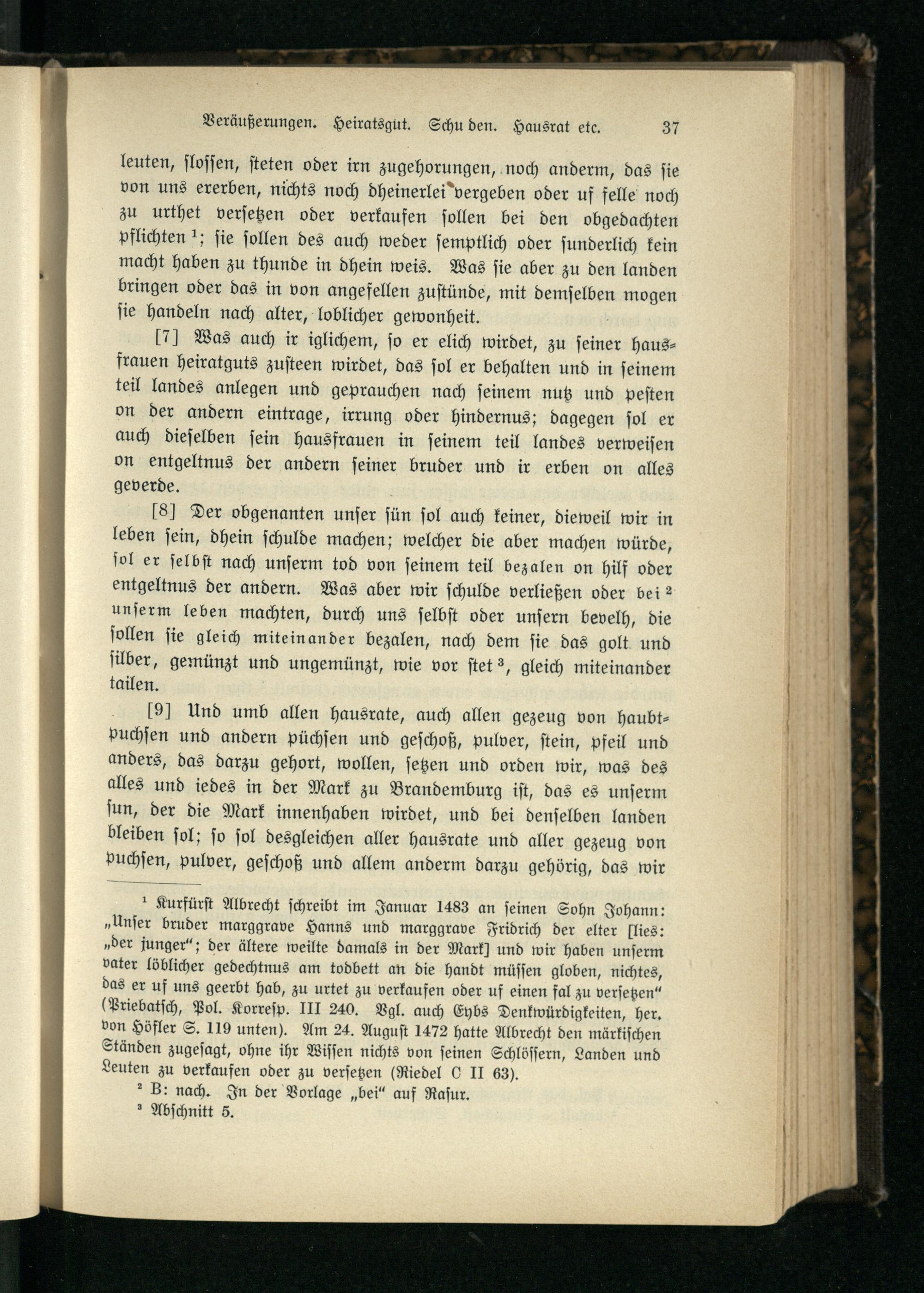 Nr. 5. Die väterliche Disposition des Kurfürsten Albrecht Achilles (Dispositio A...