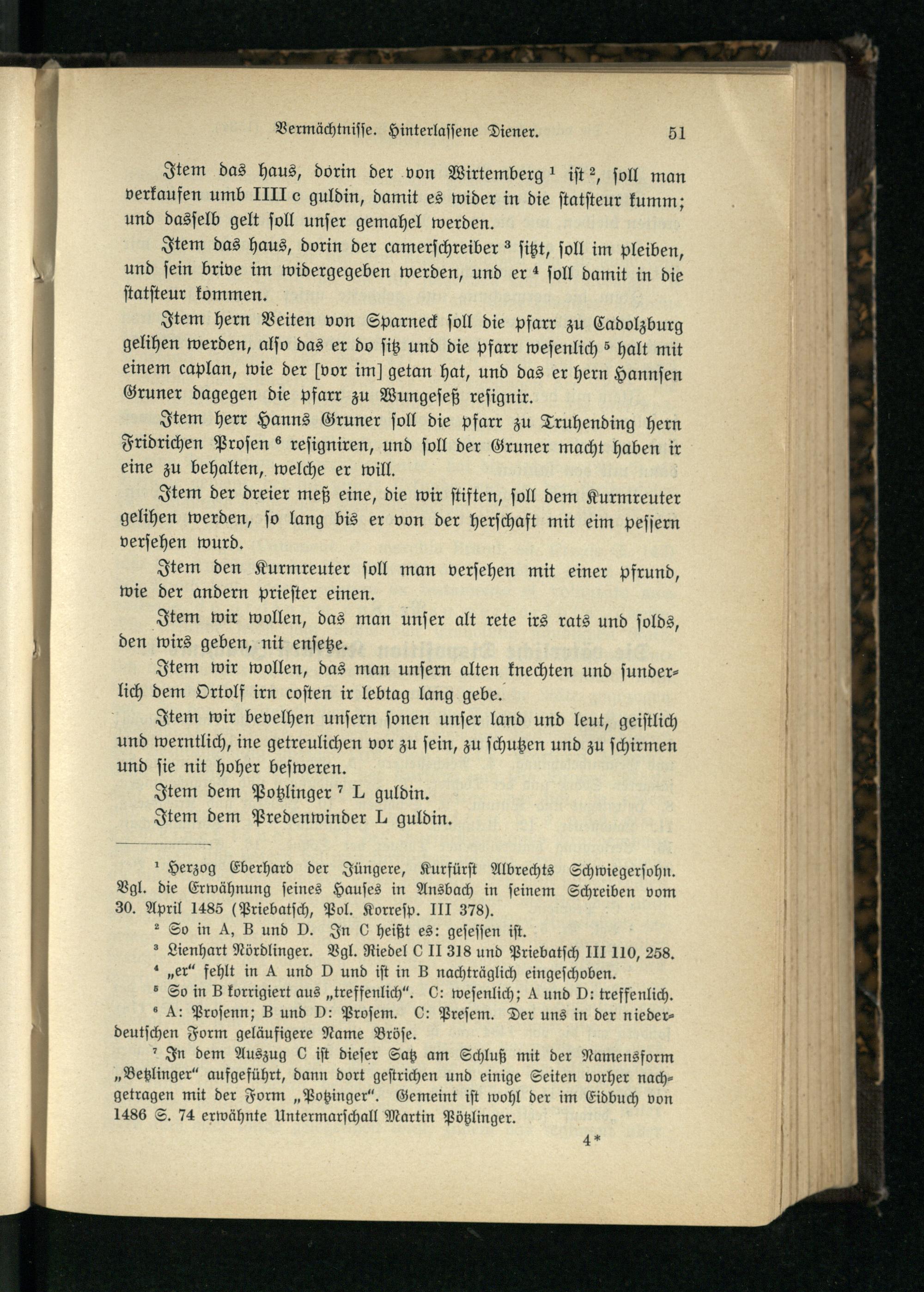 Nr. 7. Letzter Wille Kurfürst Albrechts.