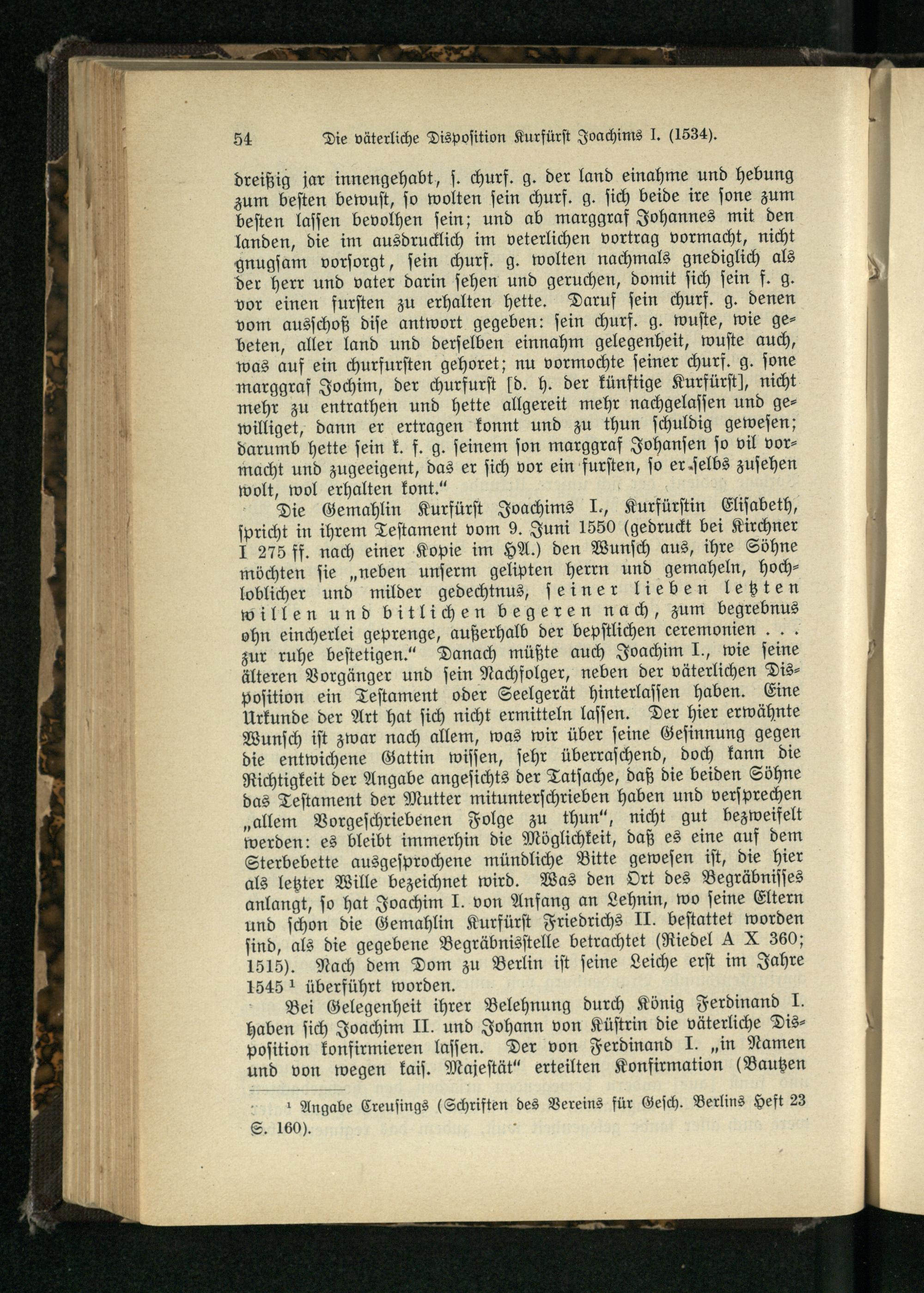 Nr. 8. Die väterliche Disposition Kurfürst Joachims I.