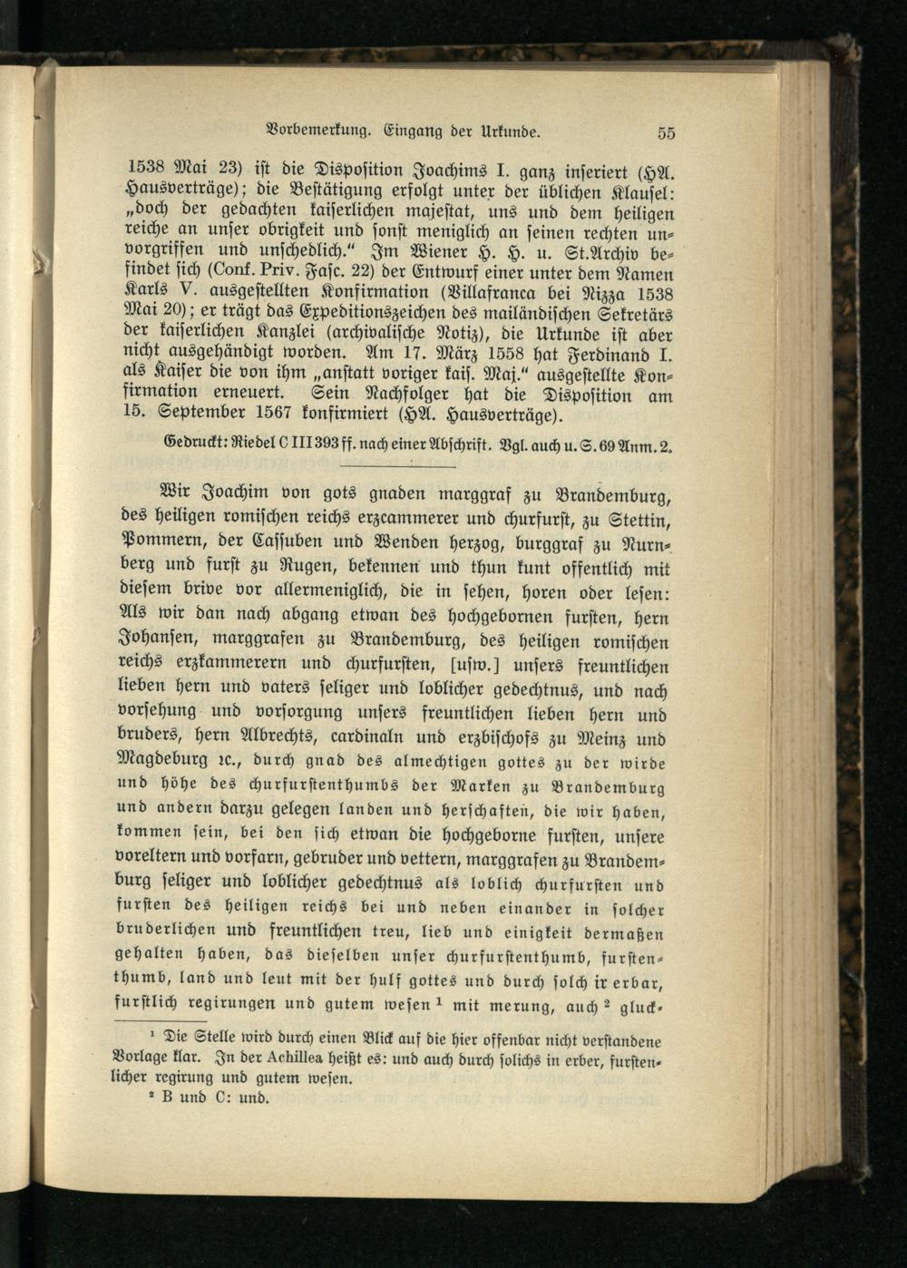 Nr. 8. Die väterliche Disposition Kurfürst Joachims I.
