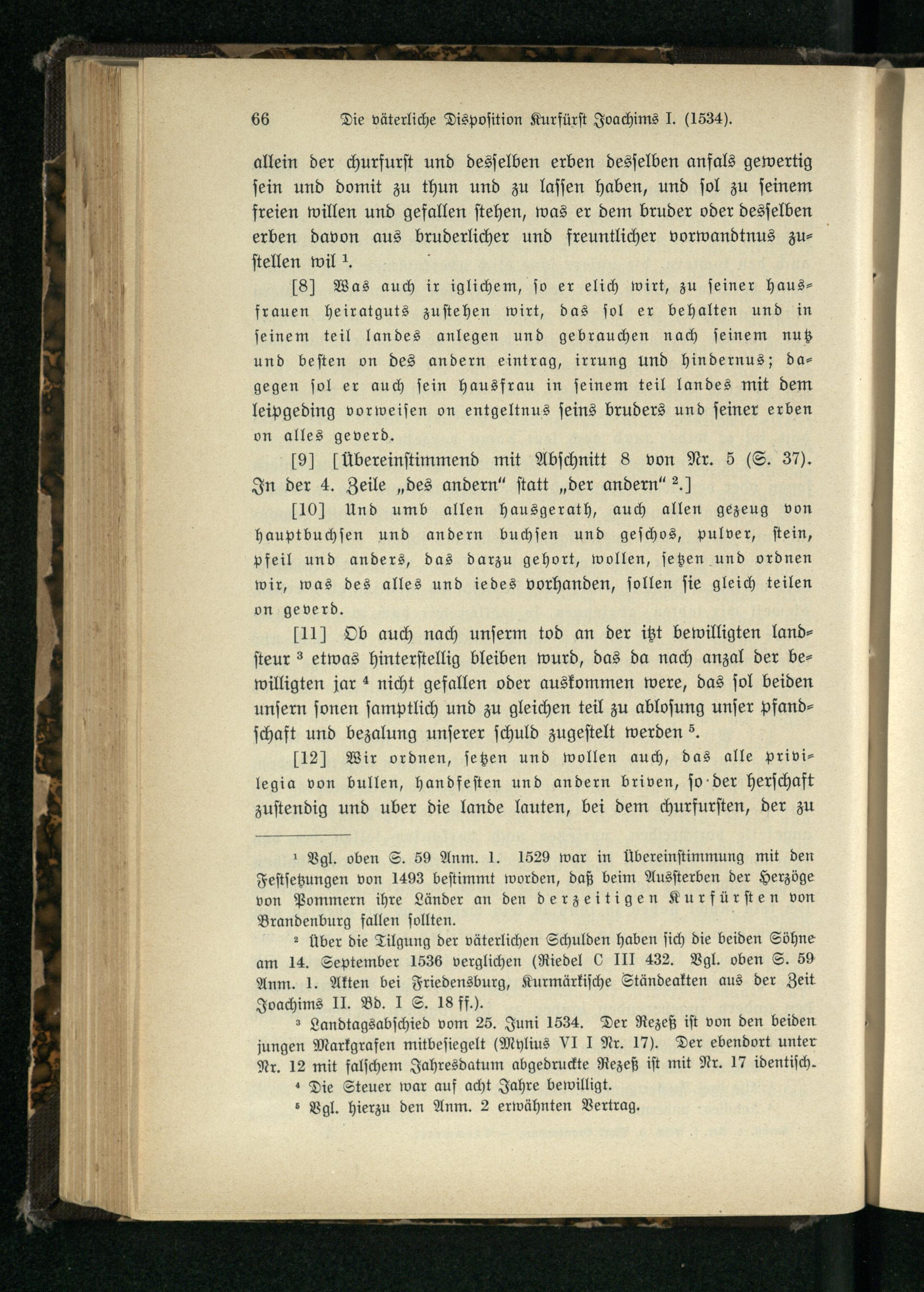 Nr. 8. Die väterliche Disposition Kurfürst Joachims I.