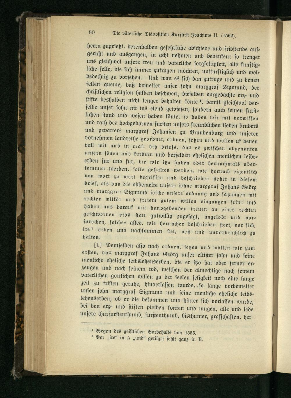 Nr. 9. Die väterliche Disposition Kurfürst Joachims II.