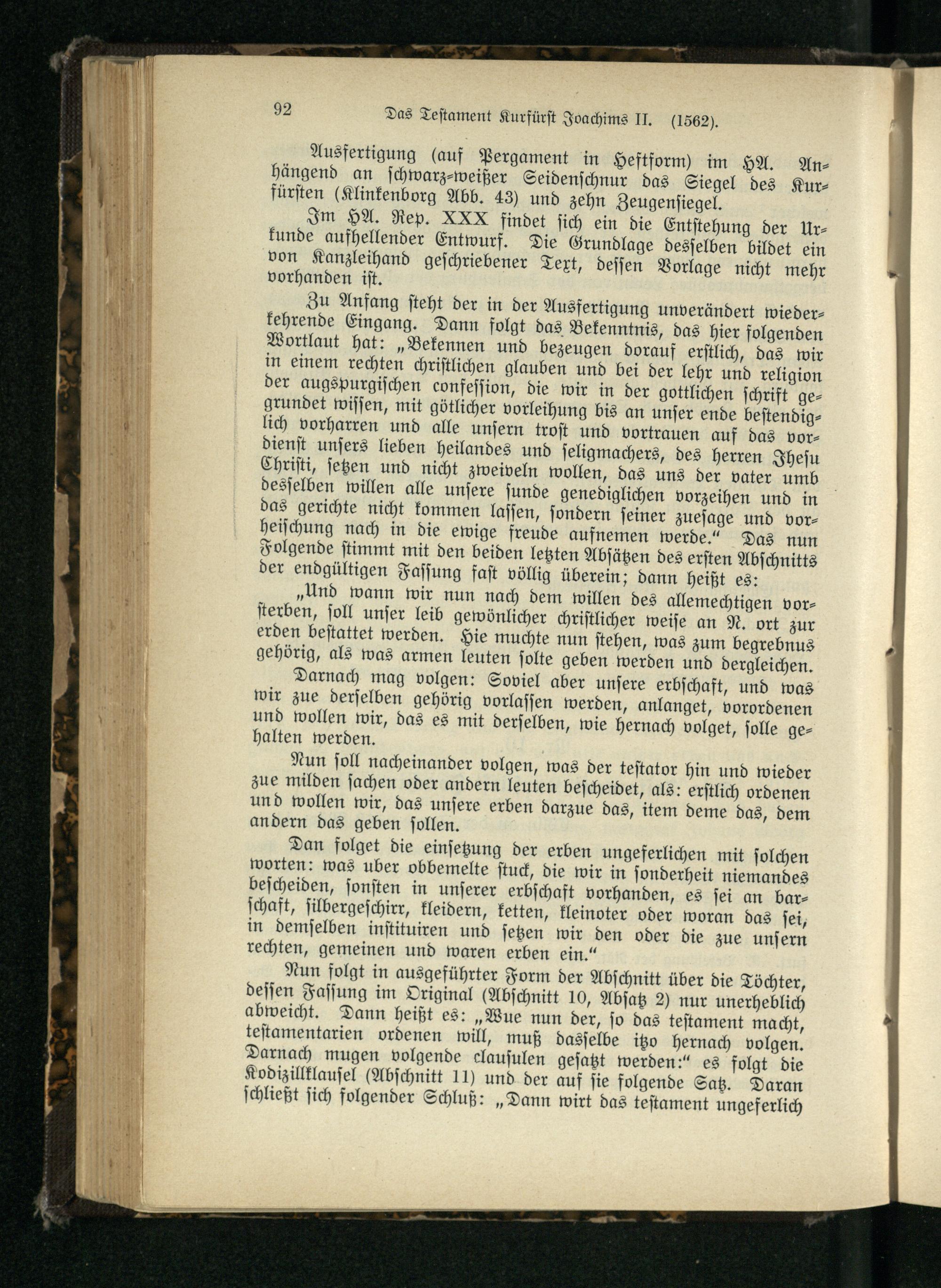 Nr. 10. Das Testament Kurfürst Joachims II.
