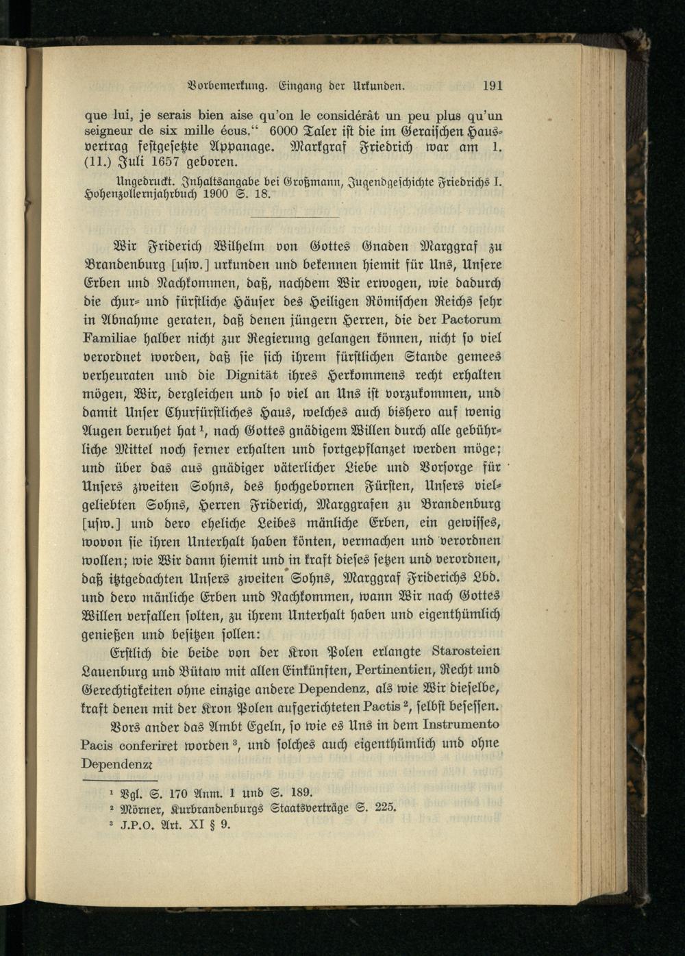 Nr. 17. Die erste Disposition des Großen Kurfürsten über die Versorgung des Markgrafen...