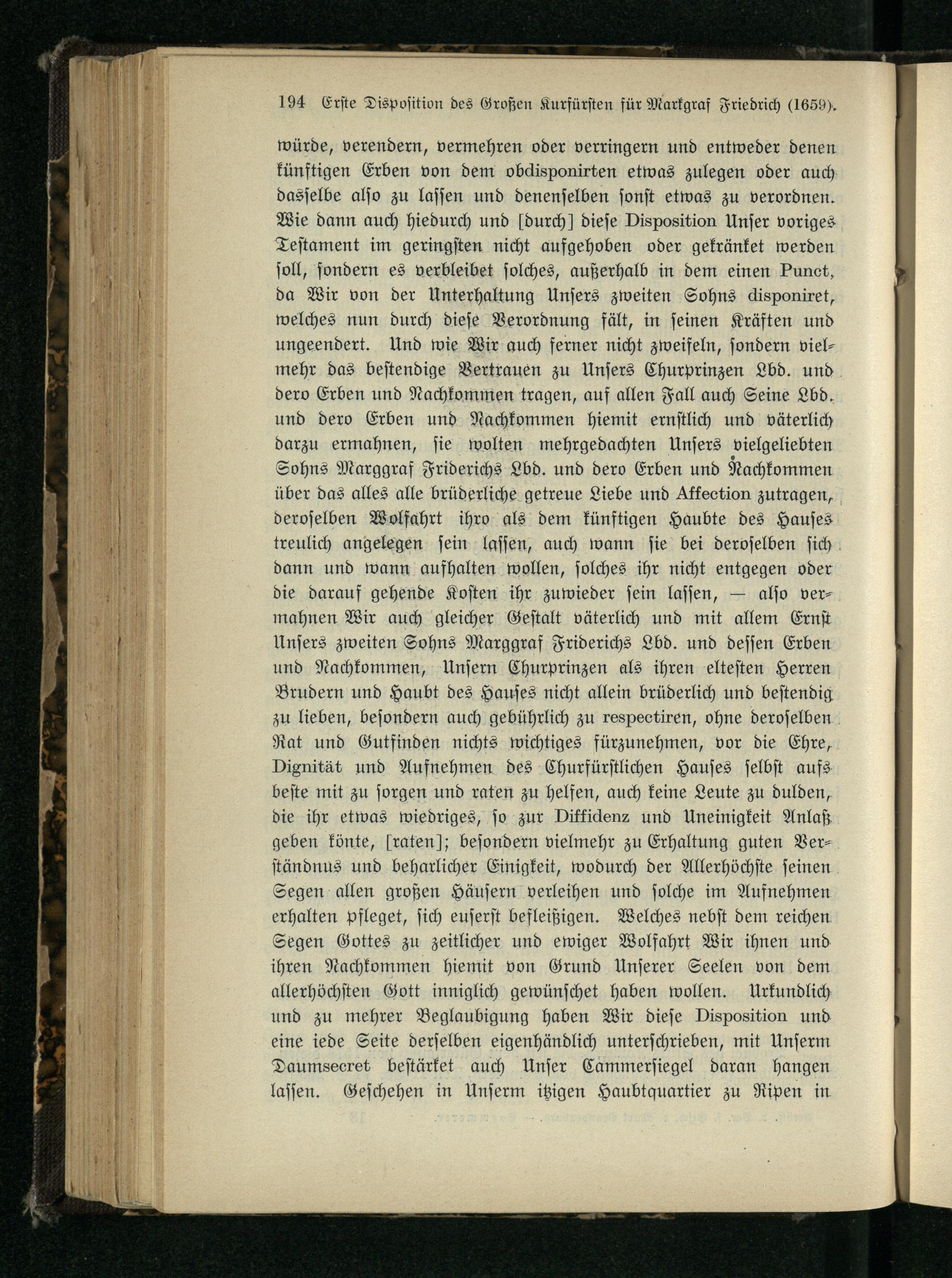 Nr. 17. Die erste Disposition des Großen Kurfürsten über die Versorgung des Markgrafen...