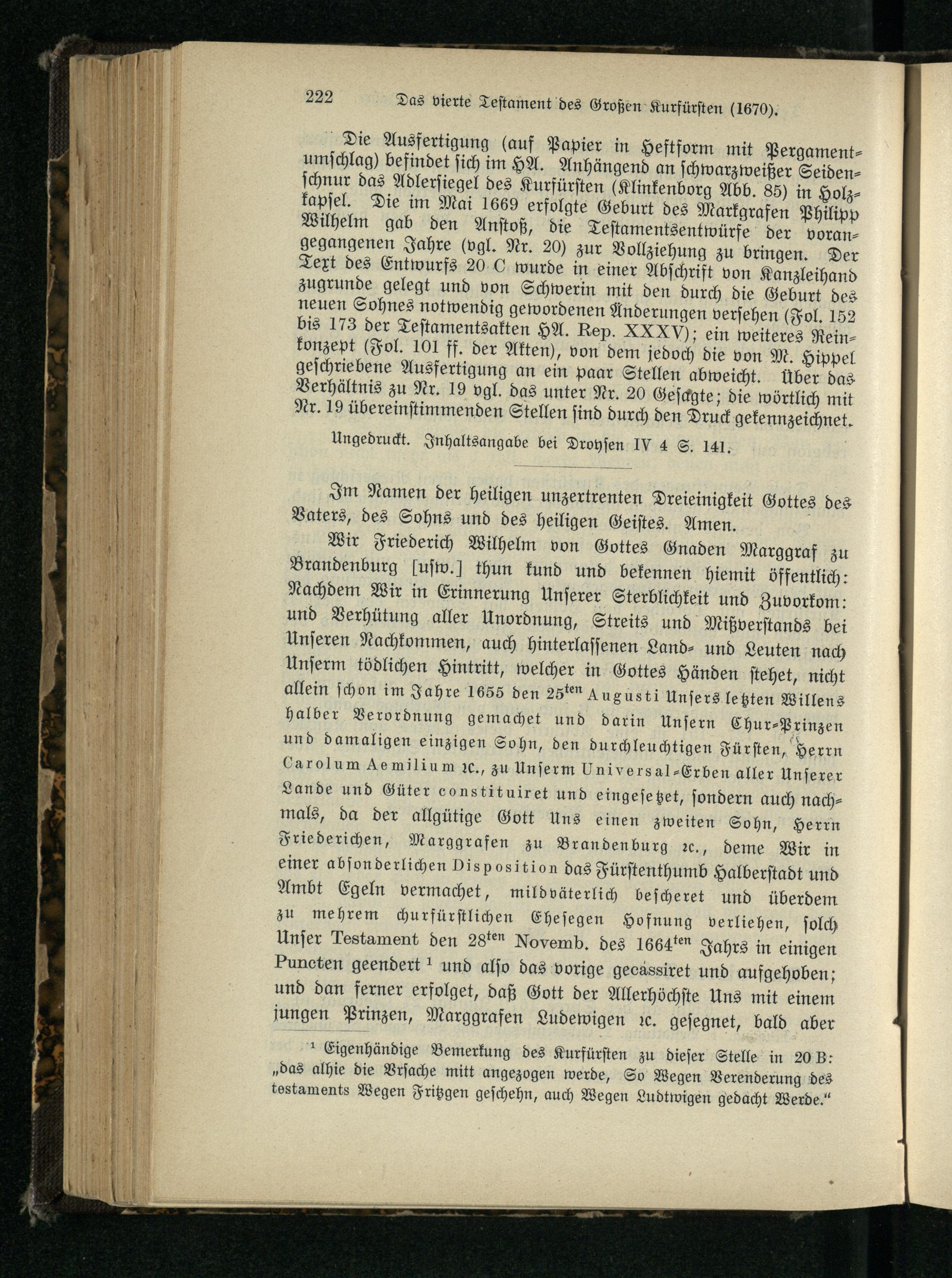 Nr. 21. Das vierte Testament des Großen Kurfürsten.