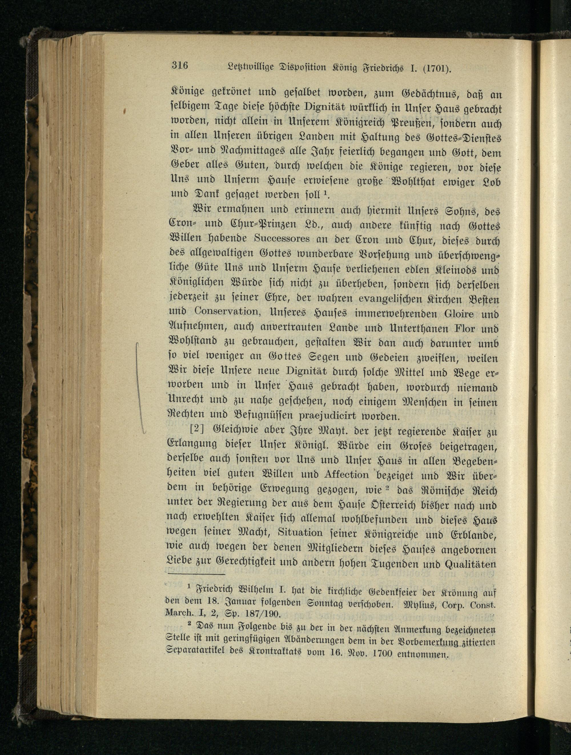 Nr. 33. Letztwillige Disposition König Friedrichs I.