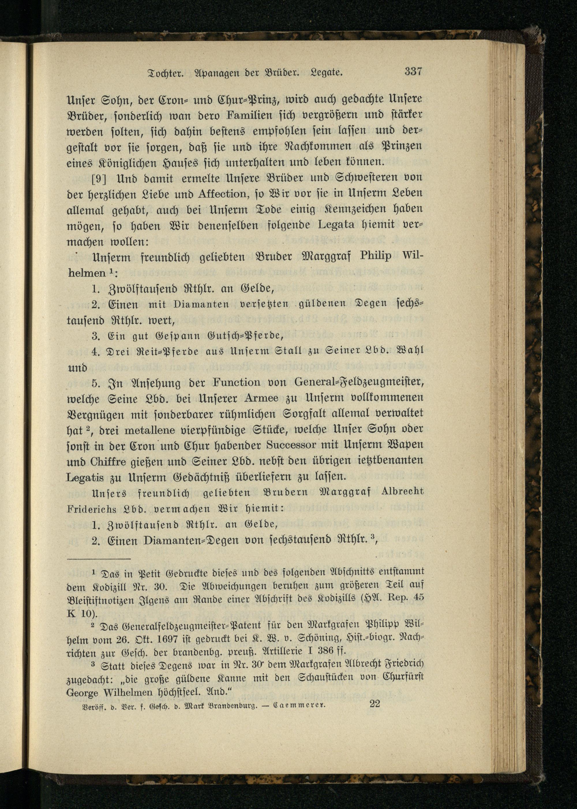 Die Testamente der Kurfürsten von Brandenburg und der beiden ersten Könige von Preußen / hrsg. von Hermann von Caemmerer