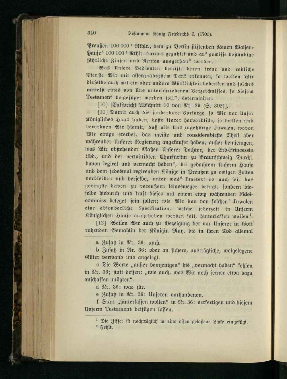 Nr. 35. Testament König Friedrichs I.
