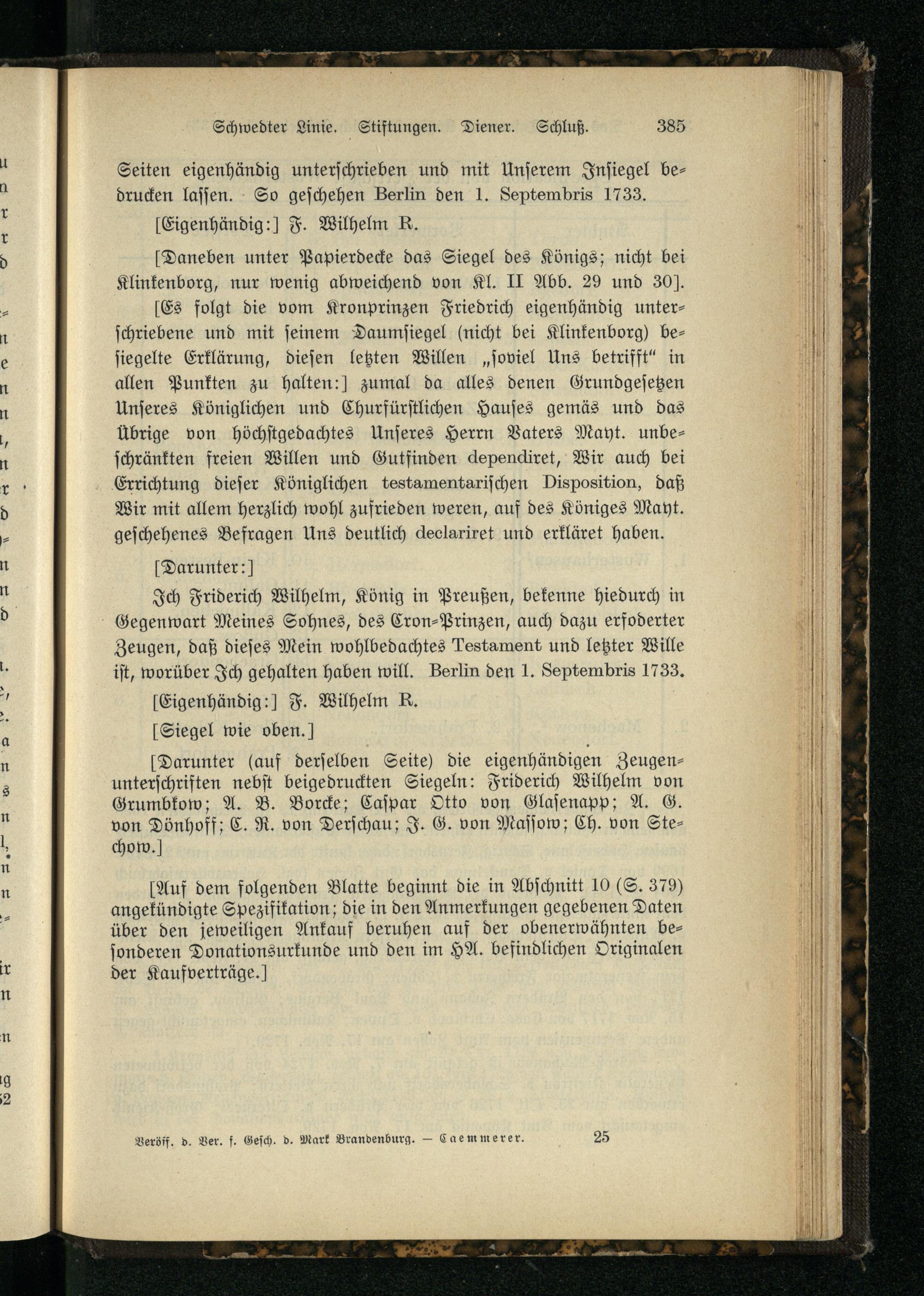 Nr. 41. Das letzte Testament König Friedrich Wilhelms I.