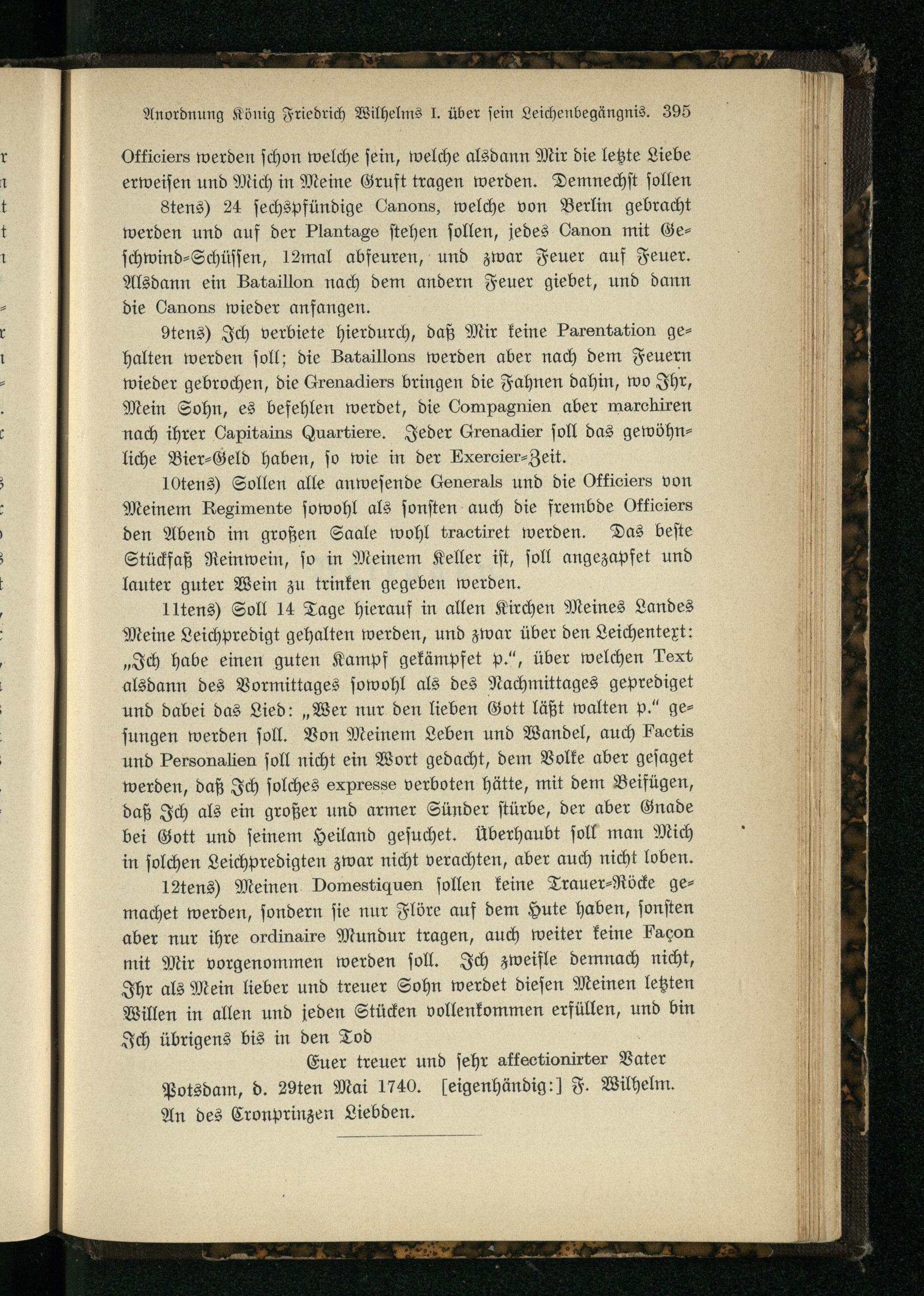 Nr. 43. Anordnung König Friedrich Wilhelms I. über sein Leichenbegängnis.