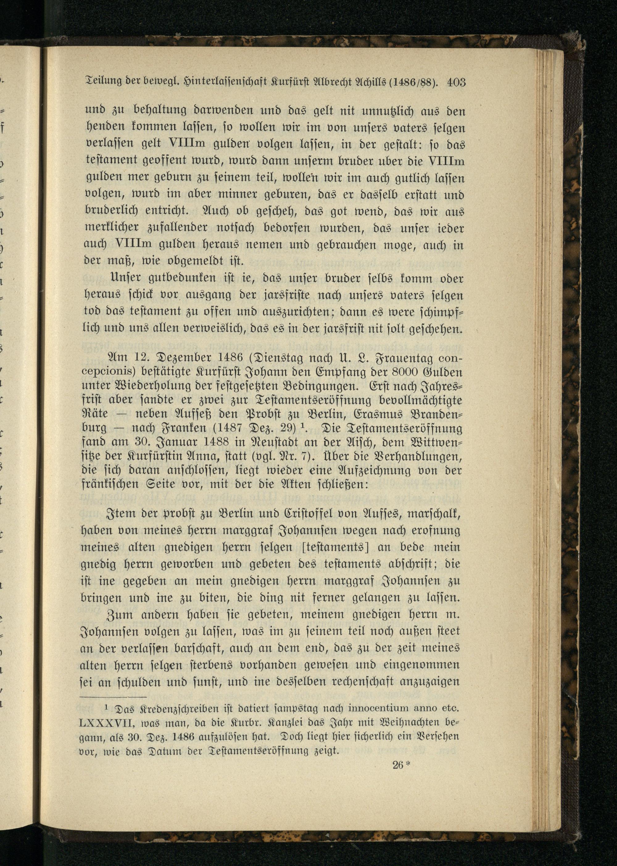 Beilage Nr. 2. Die Teilung der beweglichen Hinterlassenschaft des Kurfürsten Albrecht...