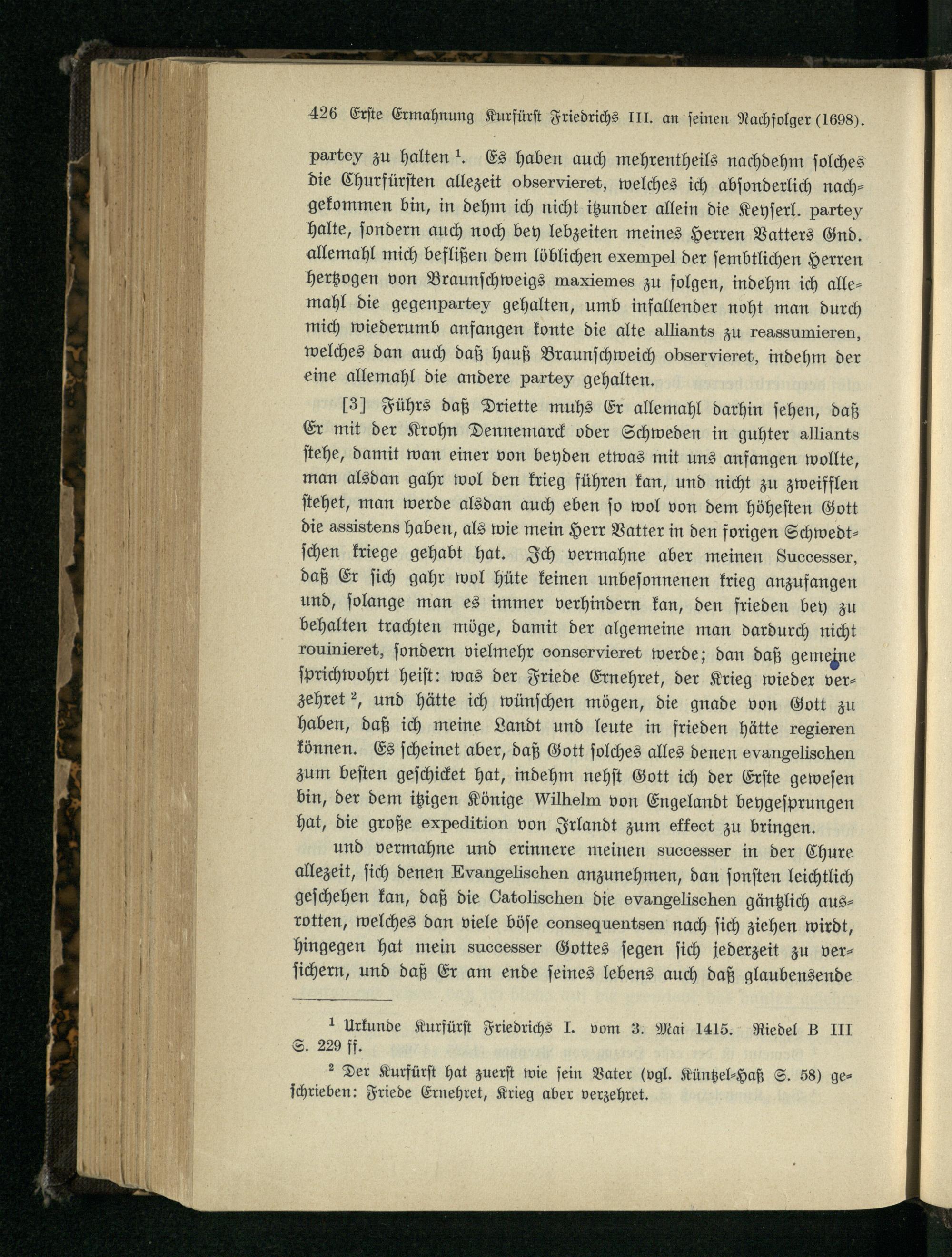 Beilage Nr. 6. Die erste Ermahnung Kurfürst Friedrichs III. an seinen Nachfolger...